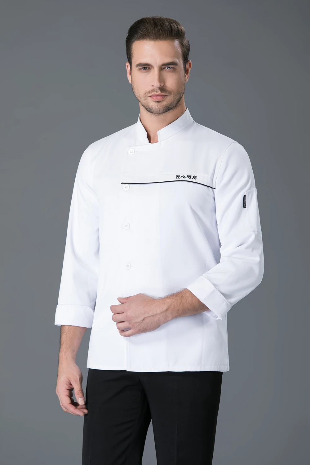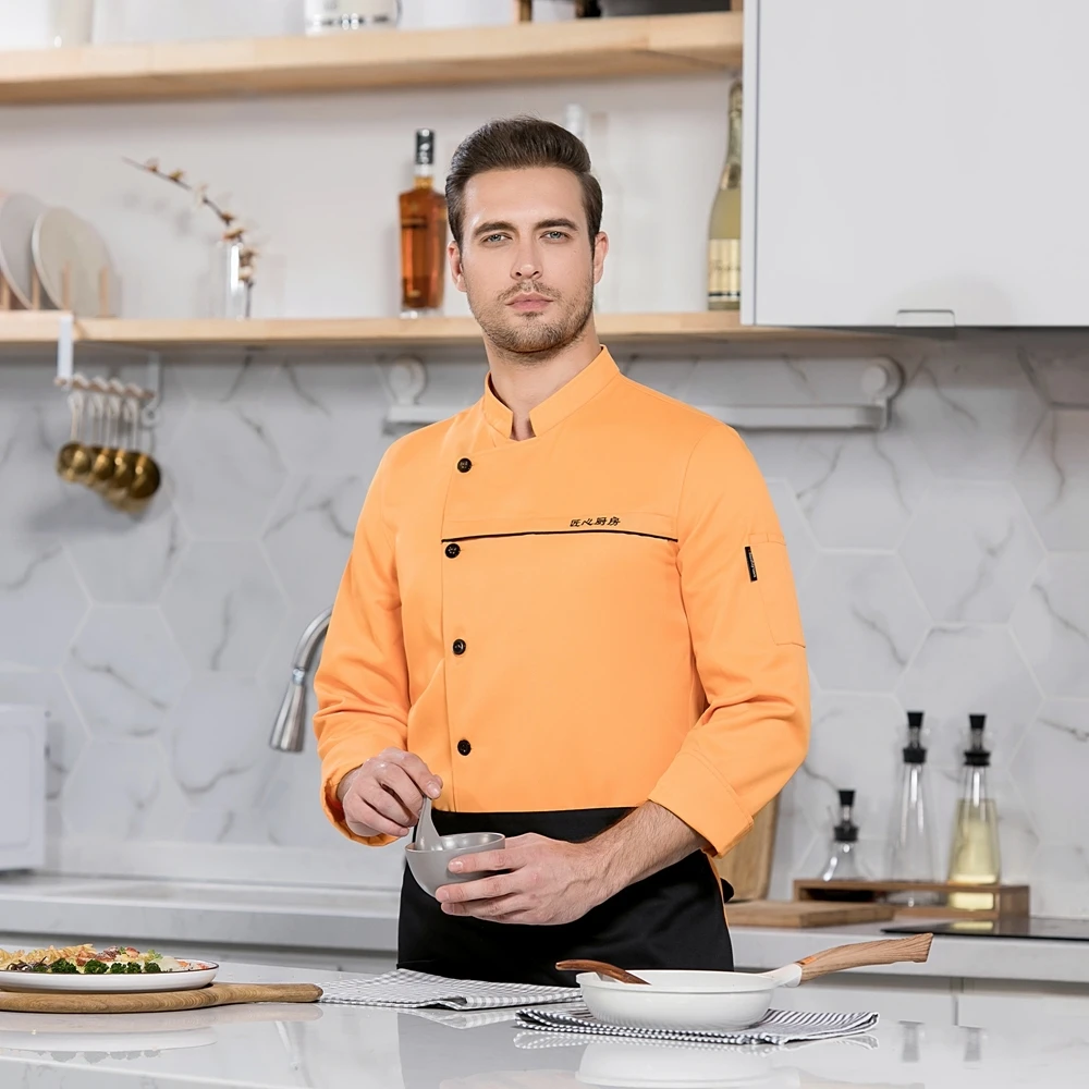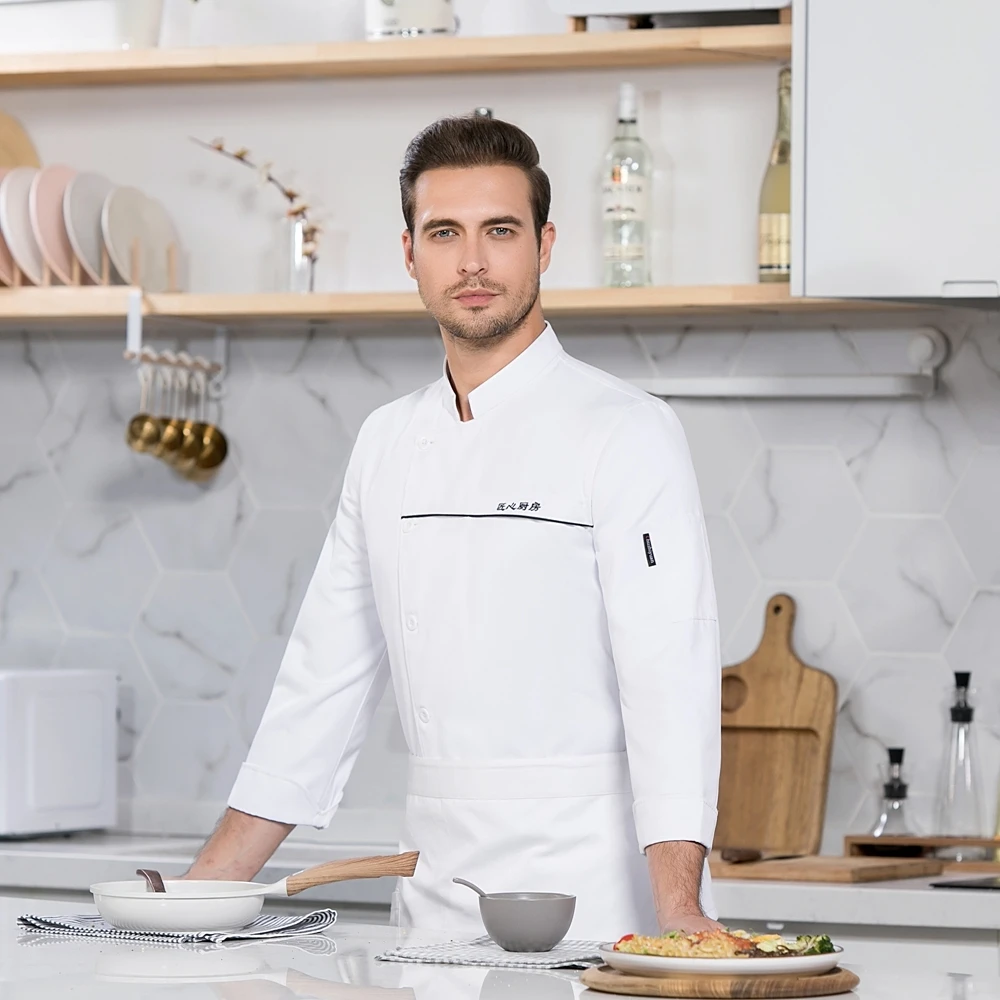 Куртка шеф-повара с длинными рукавами, однобортная МужскаяЖенскаяМужская рубашка для готовки, фартук, пищевая служба, кухня, кафе, форма официанта
