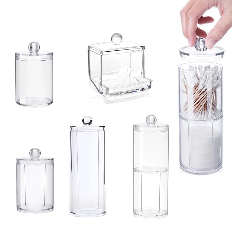 Прозрачная акриловая коробка для хранения ватных палочек, Пылезащитная косметическая стойка, органайзер для макияжа, пластиковый контейнер