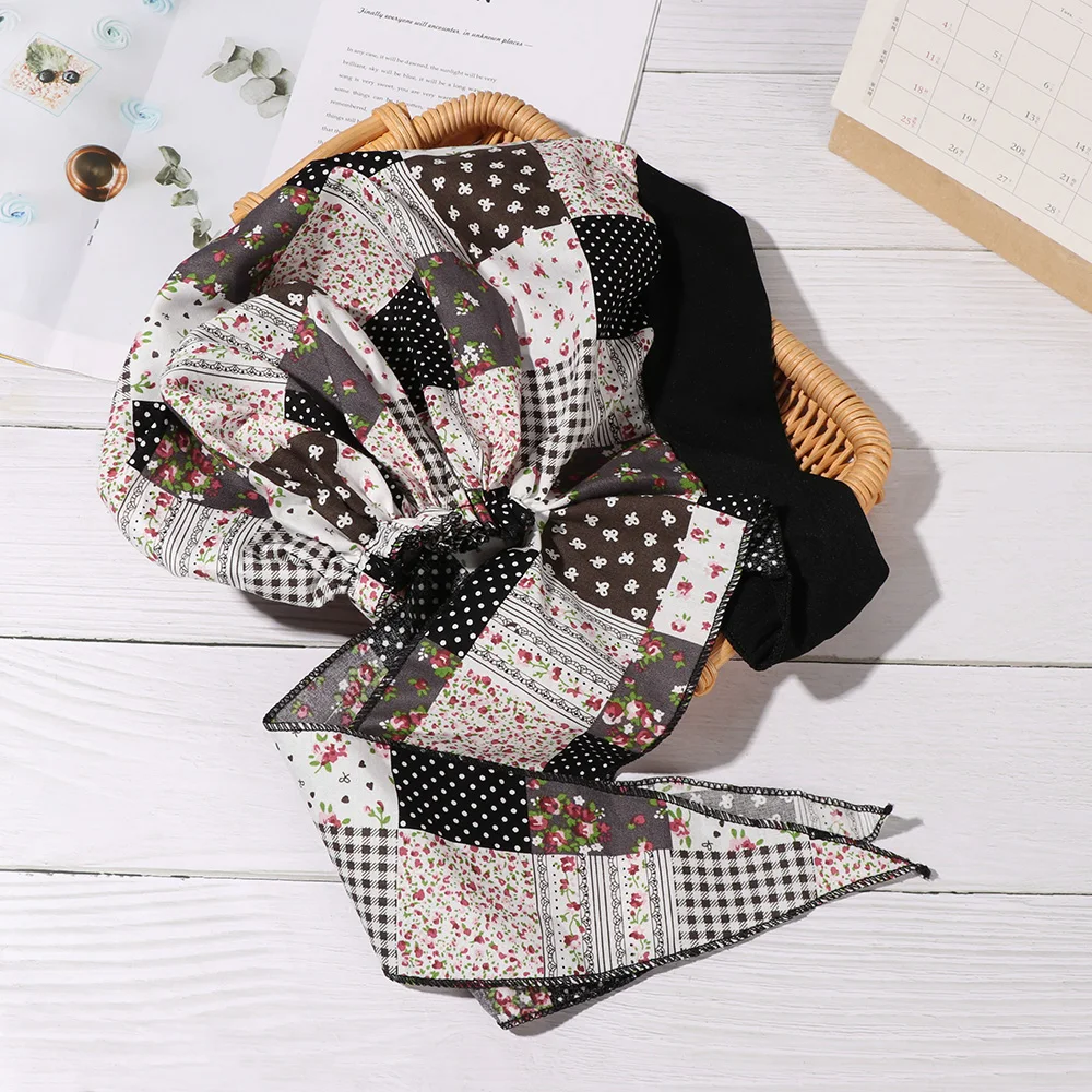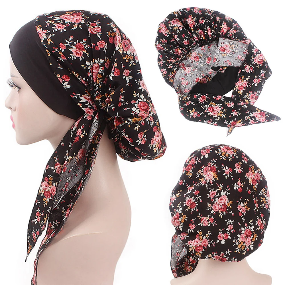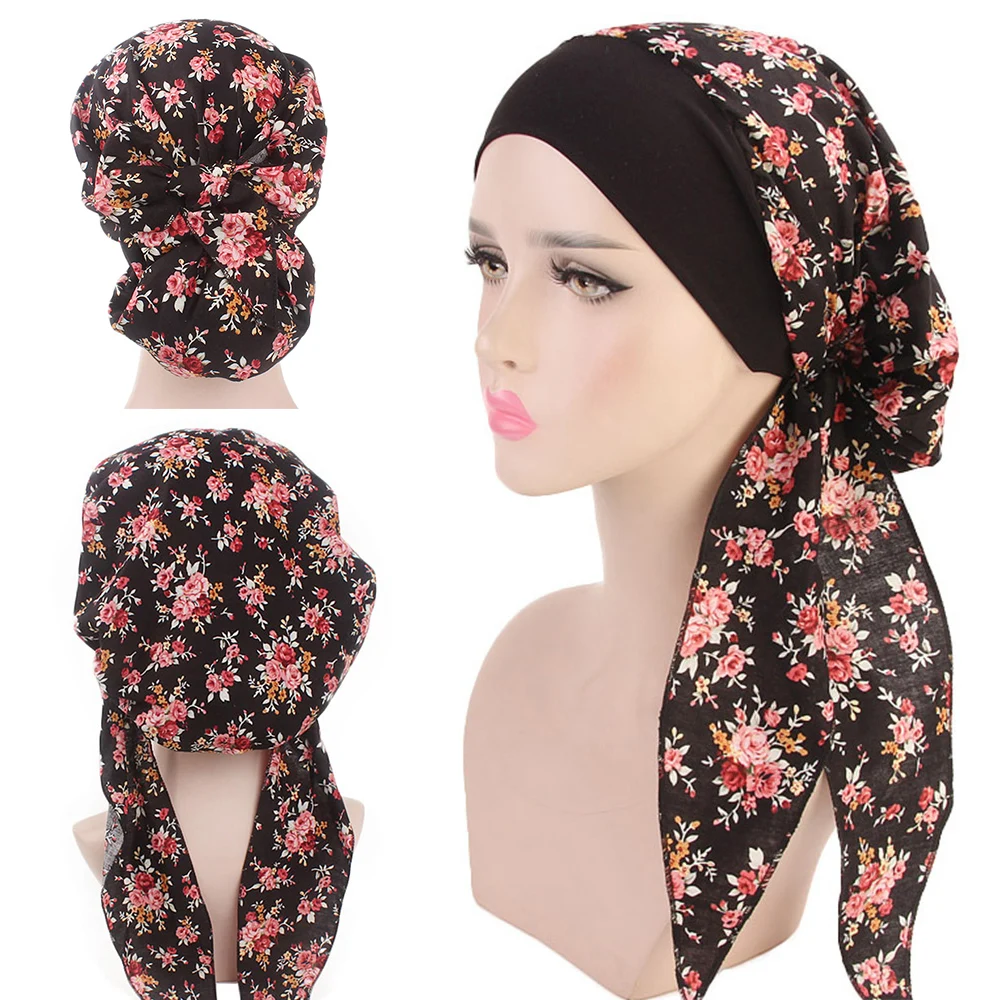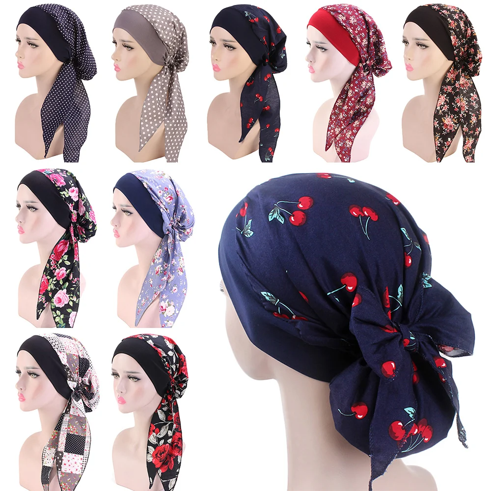 Женский эластичный мусульманский тюрбан с принтом, хиджаб, головной платок для рака, шапка для выпадения волос, предварительно завязанный головной убор, бандана