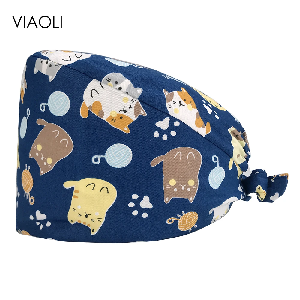 Хлопковая шапка-скрабы с принтом, шапка для оператора лаборатории, ...