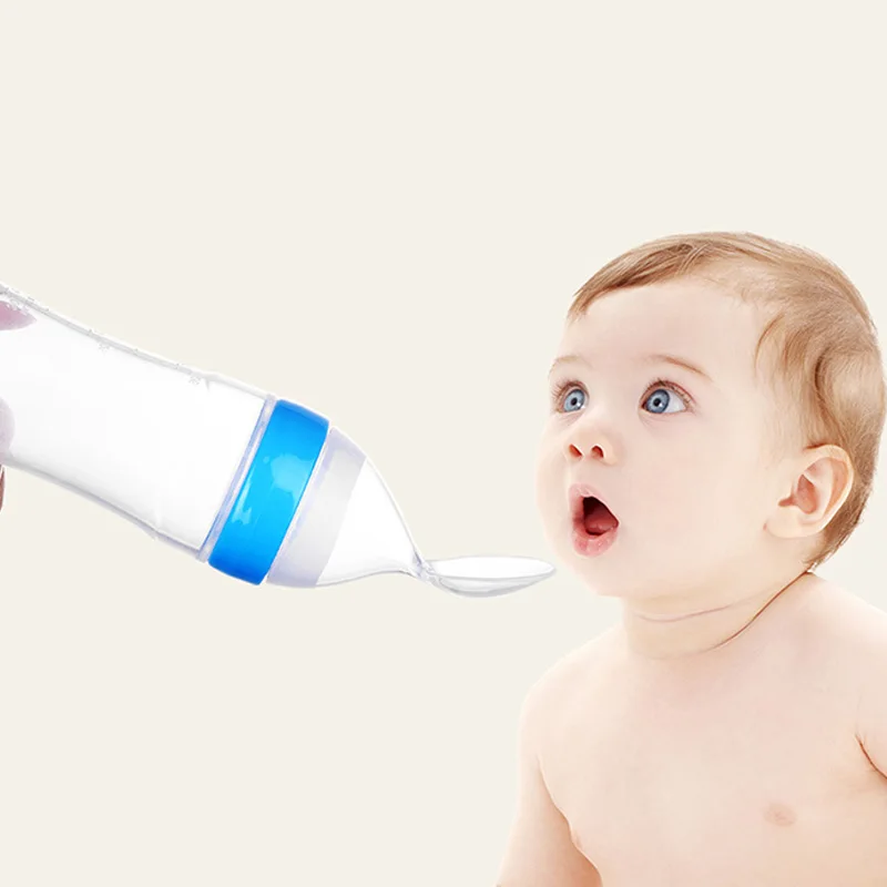 Силиконовая бутылочка для кормления младенцев, 90 мл, с ложкой, ложка для кормления
