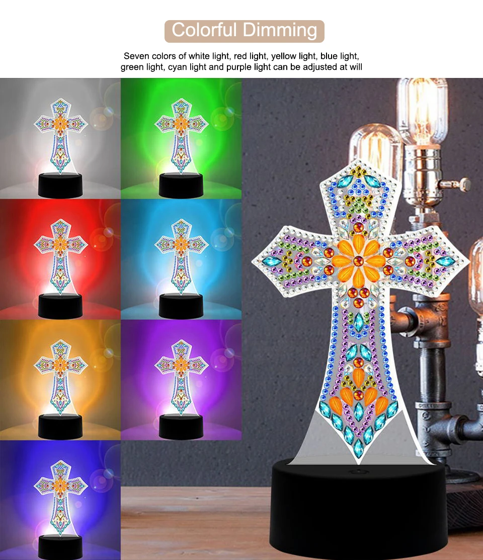 Алмазная 5d-картина сделай сам, светодиодный ночсветильник, Латиноамериканский крест, Иисус Христа, 7 цветов, Рождественское украшение, новогодний подарок для дома, настольная лампа