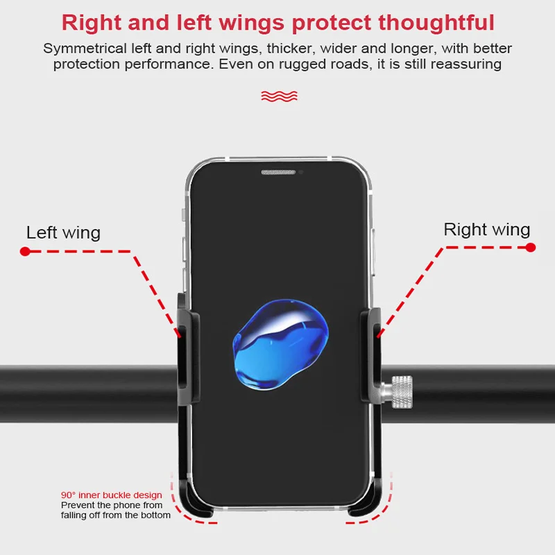 Корпус рамы из алюминиевого сплава, двойные крепежные ручки отказываются встряхивать, высокая совместимость не выбирает мобильный телефон модели, велосипеды, электромобили и т. Д. Можно использовать!
