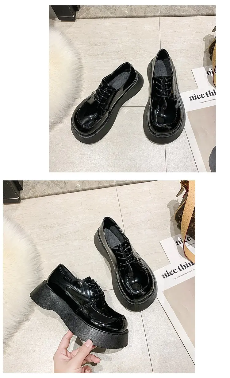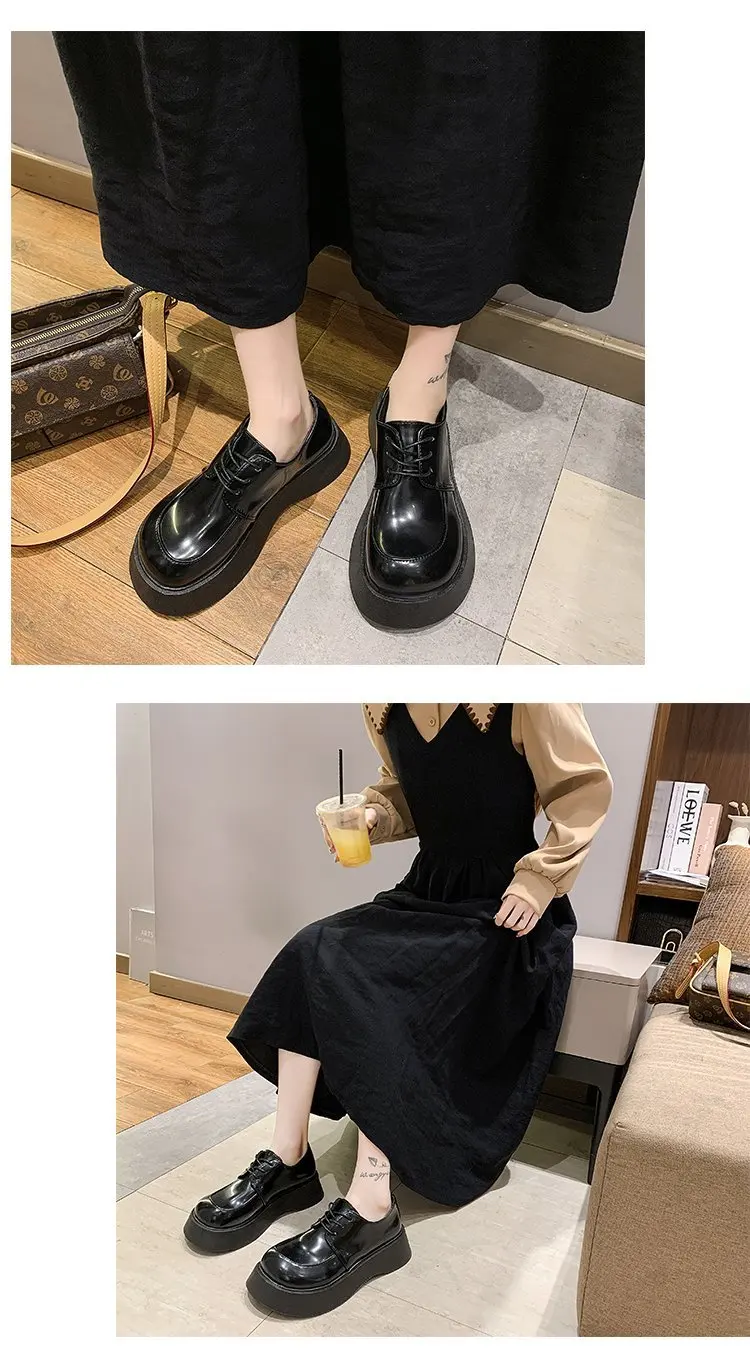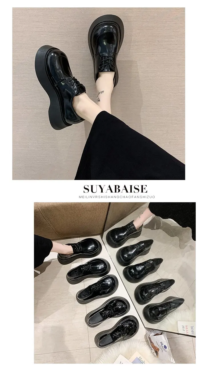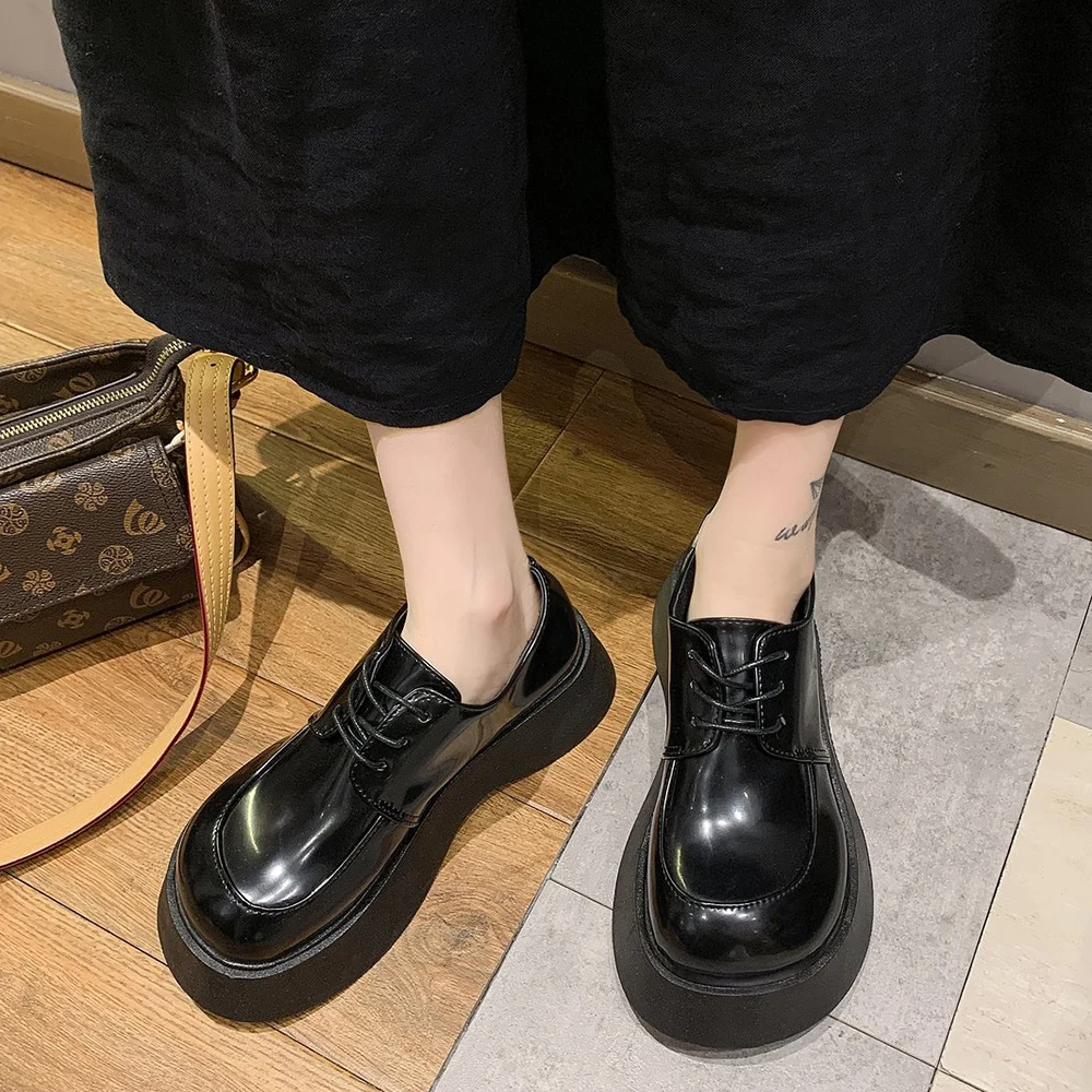 Туфли-оксфорды женские на платформе, с круглым носком, на массивном каблуке, туфли-лодочки, на шнуровке, в британском стиле, Туфли Мэри Джейн