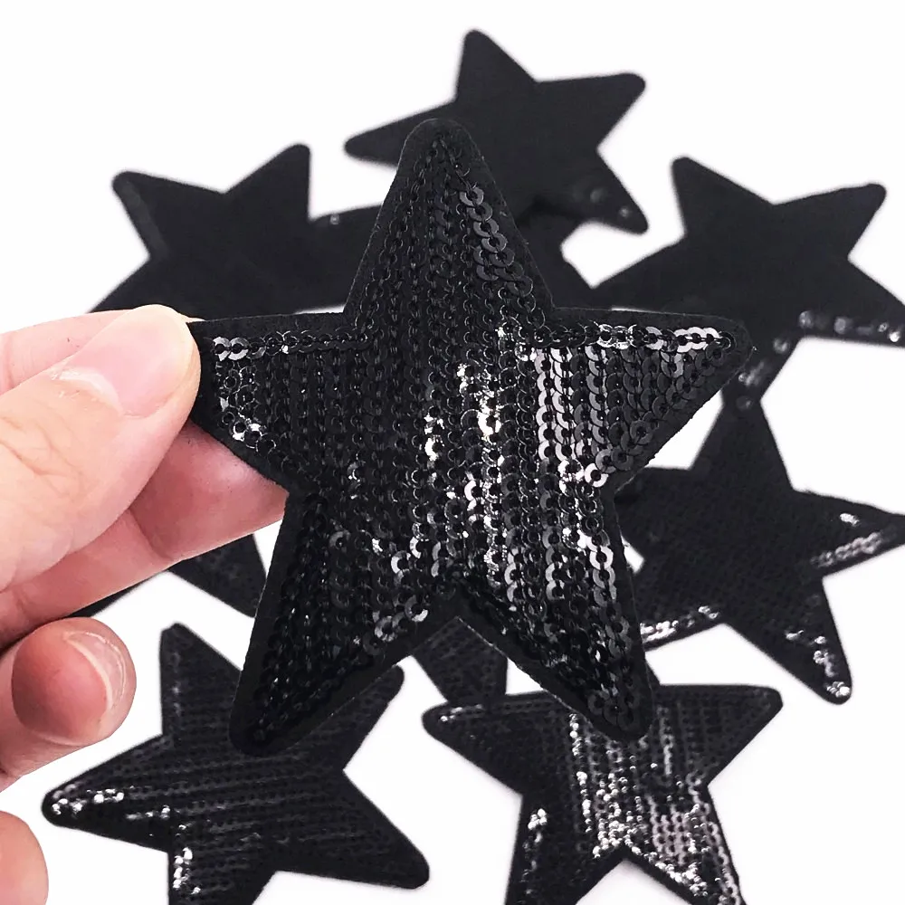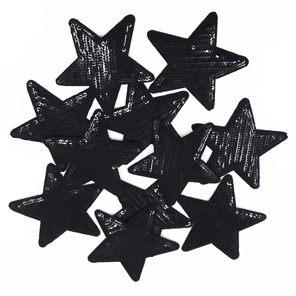 Бесплатная доставка, 10 шт., нашивка с черными звездами для одежды, вышитая аппликация для утюга на куртке, аксессуары для рукоделия, блестки
