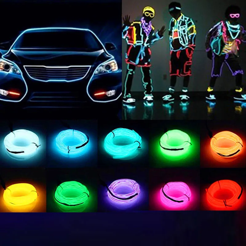 Светящийся Электрический провод, кабель, светодиод, неоновый, для вечеринки, сделай сам, костюм, одежда, светящийся автомобильный светильник, рейва 2 м3 м5 м, подарок на свадьбу, день рождения, очим, косплей
