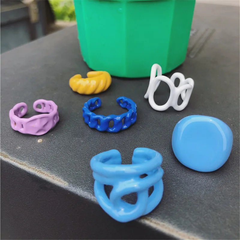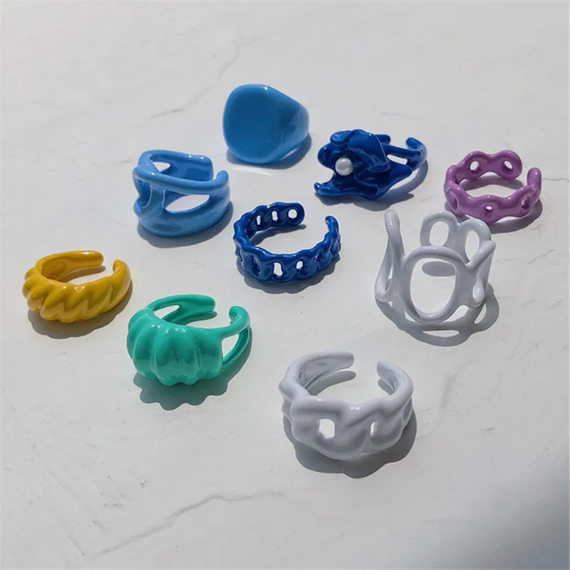 Женский набор колец, Разноцветные Летние кольца нестандартной формы...