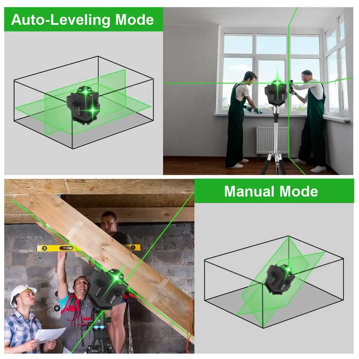 Уровень лазерный, самонивелирующийся, 16 линий, зеленый лазер, 360 градусов