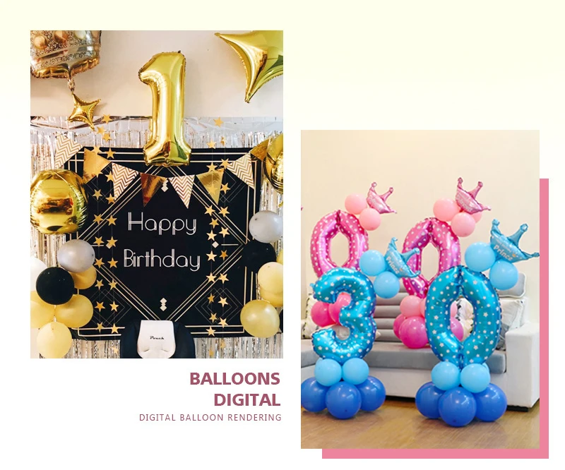 Цифровые шарики короны, украшение для дня рождения, фольгированные ...