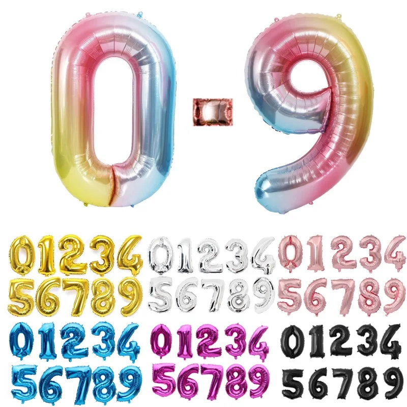 32-дюймовые радужные цифры, фольгированные воздушные шары, для дня ...