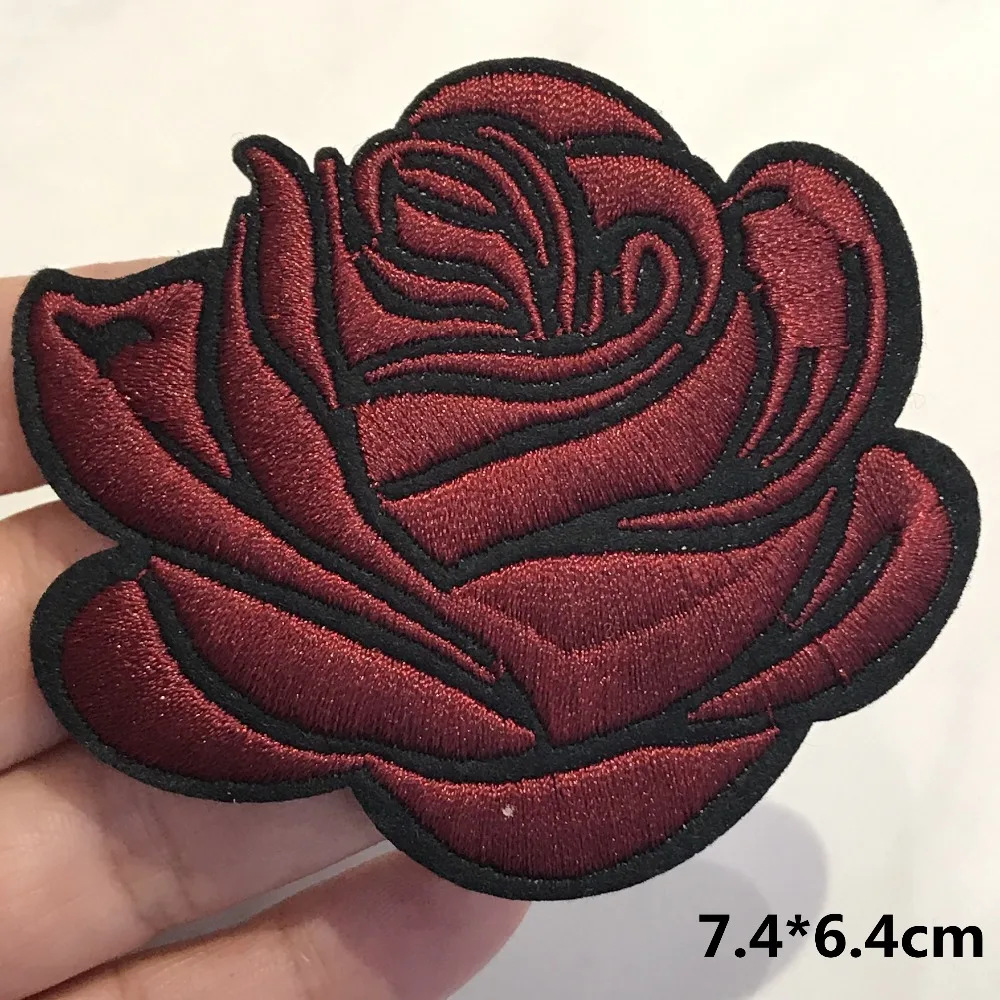 Оптовая продажа, 10 шт., патчи с вышивкой в виде цветка розы, термотрансферные нашивки для шитья утюгом, для самостоятельного изготовления футболок, одежды, наклеек, декоративная аппликация