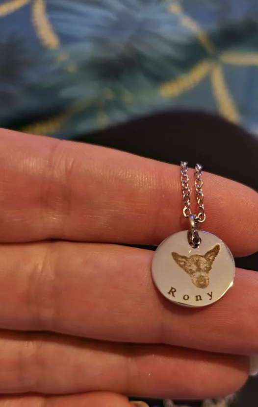 Модель красивее, чем на фото! Выглядит точно так же, как свою собаку. Моя собака прошло около двух недель назад, и это отличный памяти, чтобы иметь его. Я буду носить эту вещь на долгие годы!
