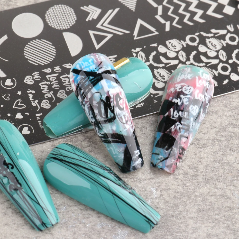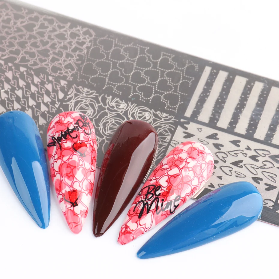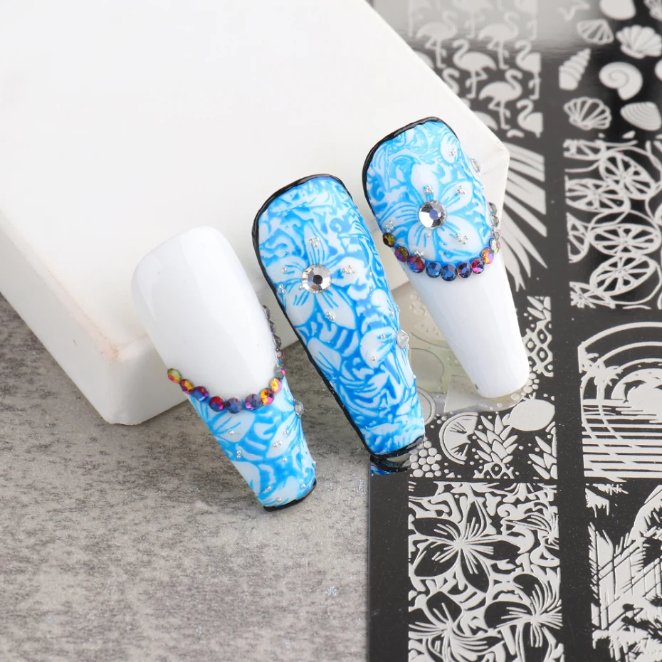 Шаблон для ногтей с пластина для стемпинга для нейл-арта, трафарет с принтом русалки, цветка, Листьев, сердца, океана, форма для лака для ногтей, NLFB01-06