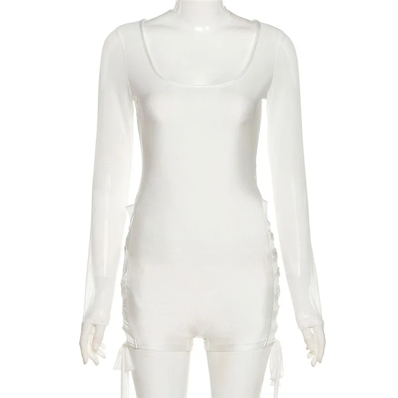 2021 сексуальный женский комбинезон с круглым вырезом и длинным рукавом, открытый комбинезон, короткие комбинезоны, Женский Облегающий комбинезон