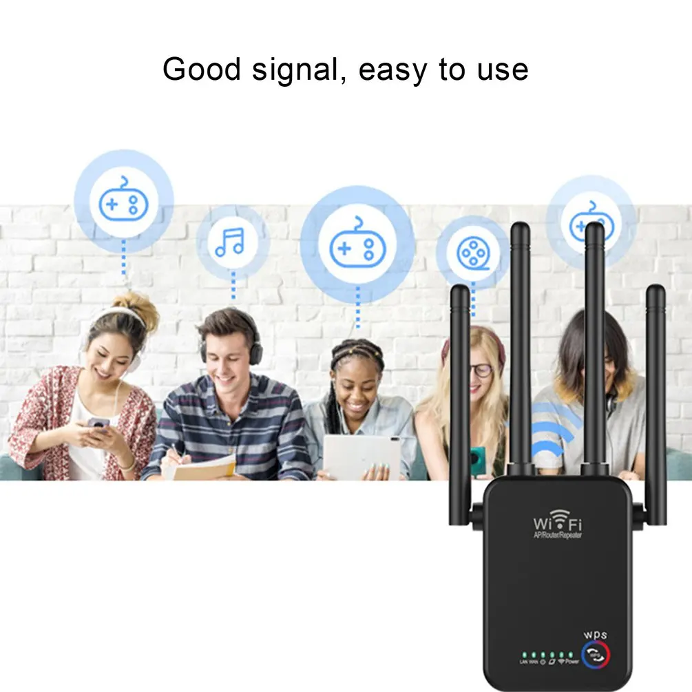 2. Двухдиапазонный 2,4g и 5g. Усилитель wifi поддерживает Wi-Fi 802.11a/b/g/n/ac. Скорости передачи данных до 1200 Мбит/с, 867 Мбит/с) Wi-Fi 5 ГГц полосы и 300 Мбит/с на 2,4 ГГц, делает это идеальное решение для дома и малого бизнеса с несколькими устройствами.