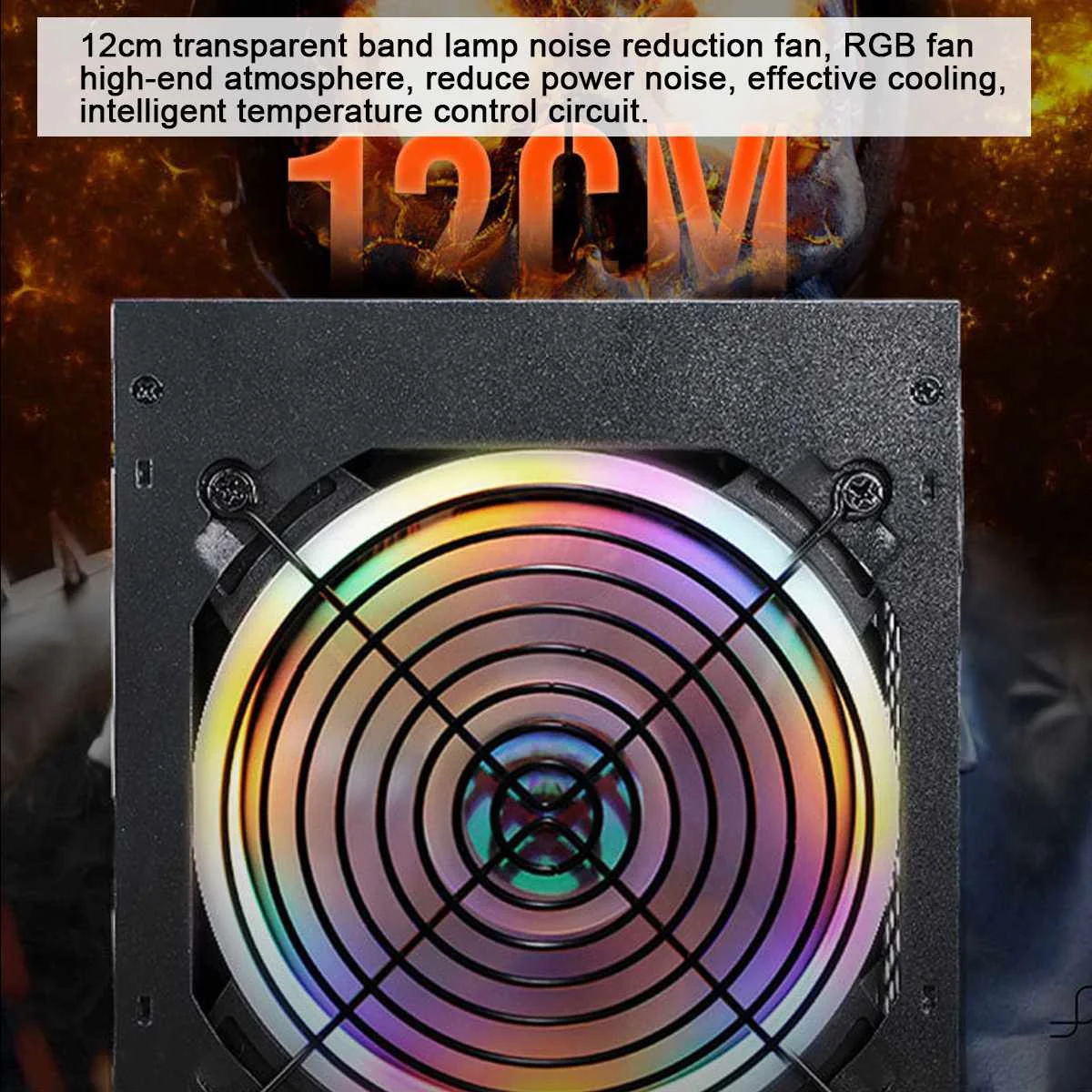 Особенности:-Удлинить провод, линию назад. Удлинительный провод питания поддерживает все высококлассные видеокарты, достаточный источник питания 12 В.-Долговечная мощность, высокая мощность. Улучшенный 12 В для удовлетворения потребностей средних и высоких видеокарт, более стабильная выходная мощность.-Использование версии INTEL ATX12V 2,31 спецификации питания Улучшенная Совместимость производительности, более высокая стабильность.-Оригинальный источник питания, более стабильная производительность, длительная игровая мощность.-Прозрачный вентилятор с шумоподавлением ленточная лампа 12 см, высококлассный вентилятор RGB, снижает шум мощности, эффективное охлаждение, интеллектуальная схема контроля температуры.-Потребляемая мощность встроенного энергосберегающего чипа управления в режиме ожидания составляет менее 1 Вт, А шестикратная защита экономит энергию (Перегрузка по току/перенапряжение/Пониженное напряжение/перегрев/перегрузка/короткое замыкание).-Профессиональный источник питания видеокарты, выходной ток выше источник питания ЦП источника питания, что отвечает текущей мощности видеокарты намного больше, чем тенденции энергопотребления ЦП.-Соответствует хорошей конструкции цепи, может адаптироваться к более высокому диапазону напряжения. В то же время, скорость использования основной электроэнергии выше, выход более стабильный, эффективное энергосбережение.