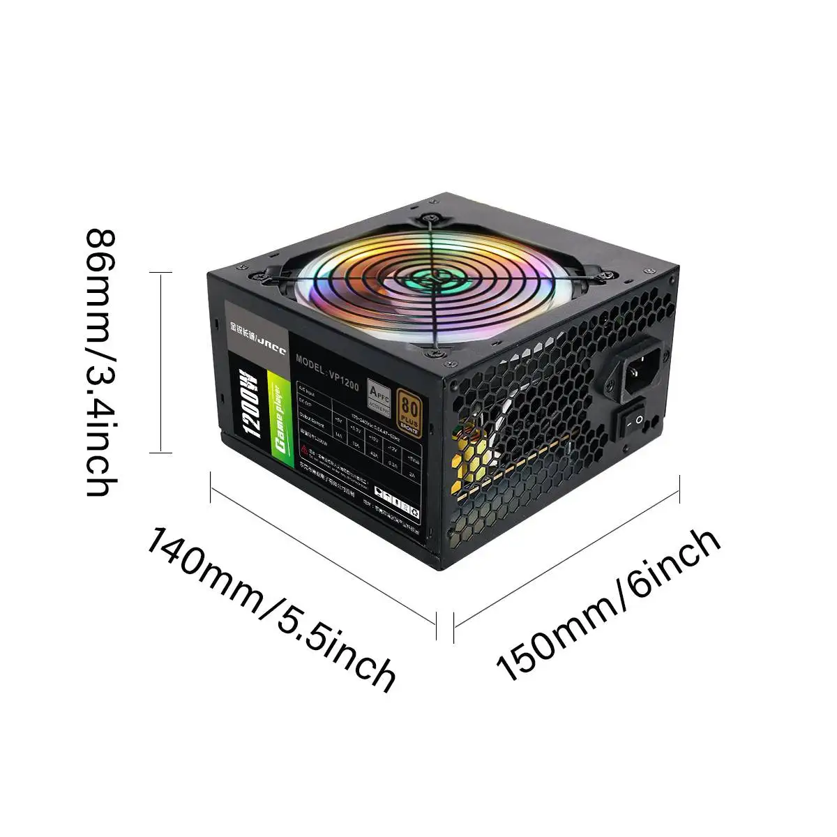 Блок питания 1200 Вт активный PFC 120 мм светодиодный вентилятор 12 В ATX 8 контактов + 2x6 контактов SATA светодиодный блок питания для ПК компьютера для настольного игрового компьютера