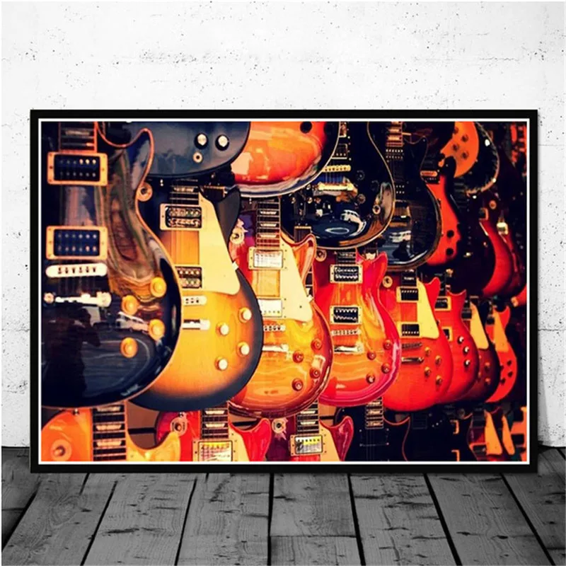 Настенная Картина на холсте с изображением гитар, инструментов, кол...