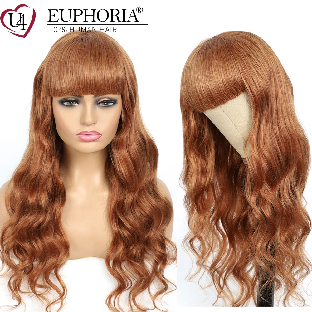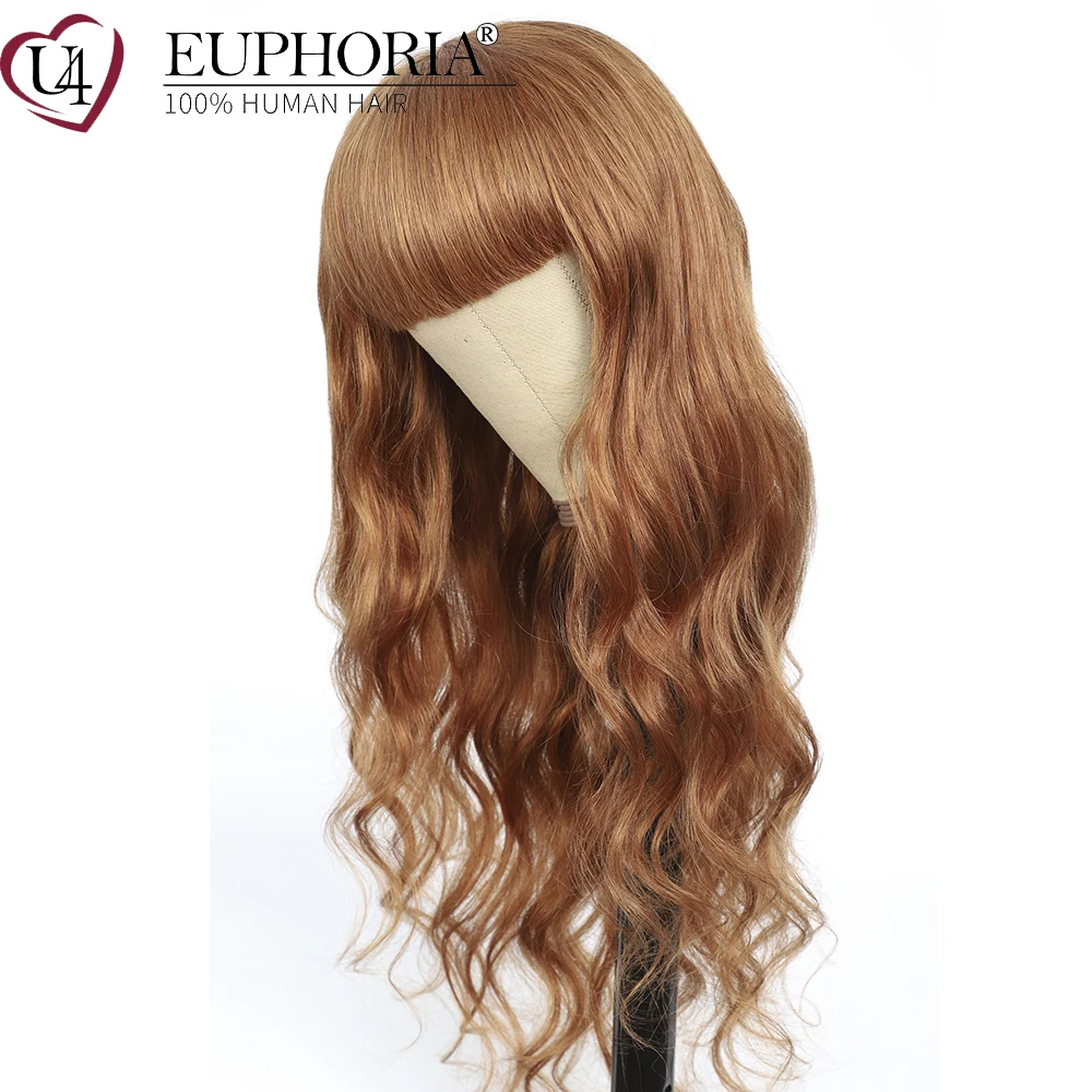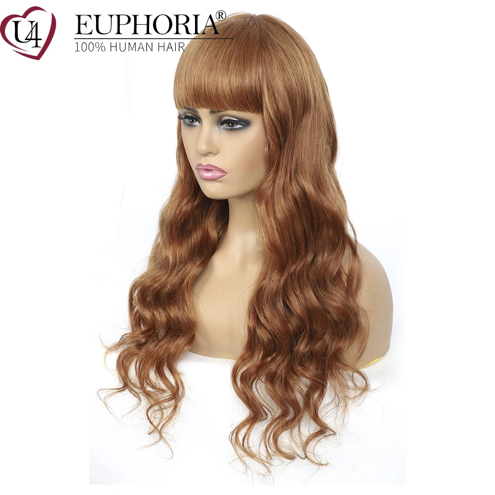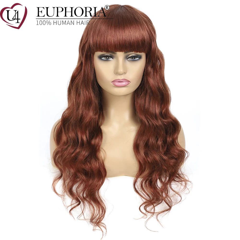Коричневый 30 волнистые парики с челкой красный бордовый бразильский 9А Remy человеческие волосы полный машинный парик блонд коричневый длинный парик EUPHORIA
