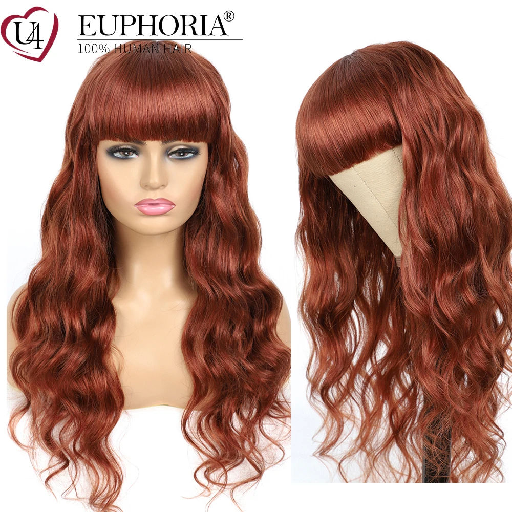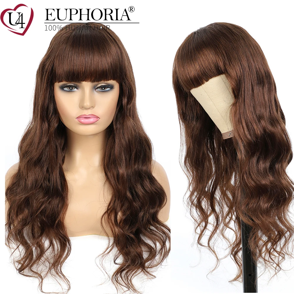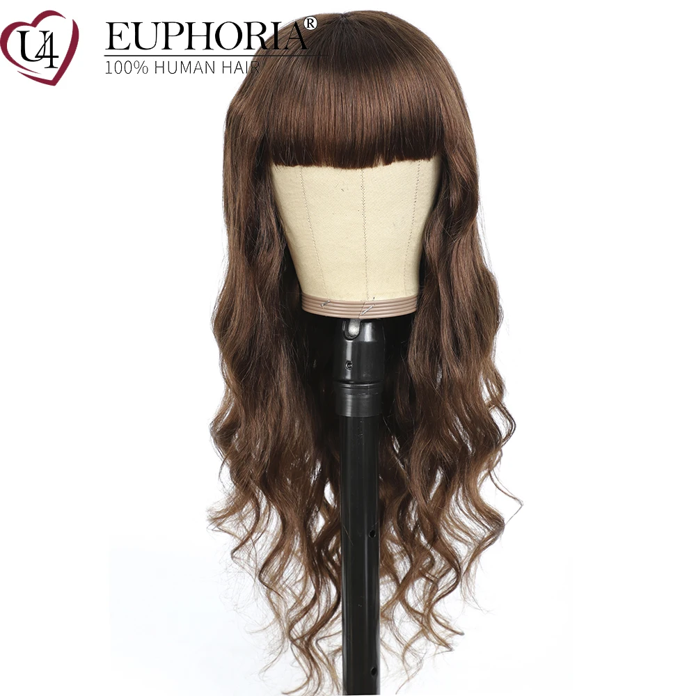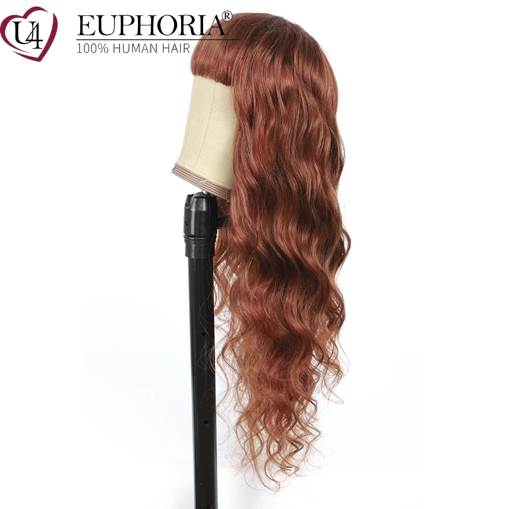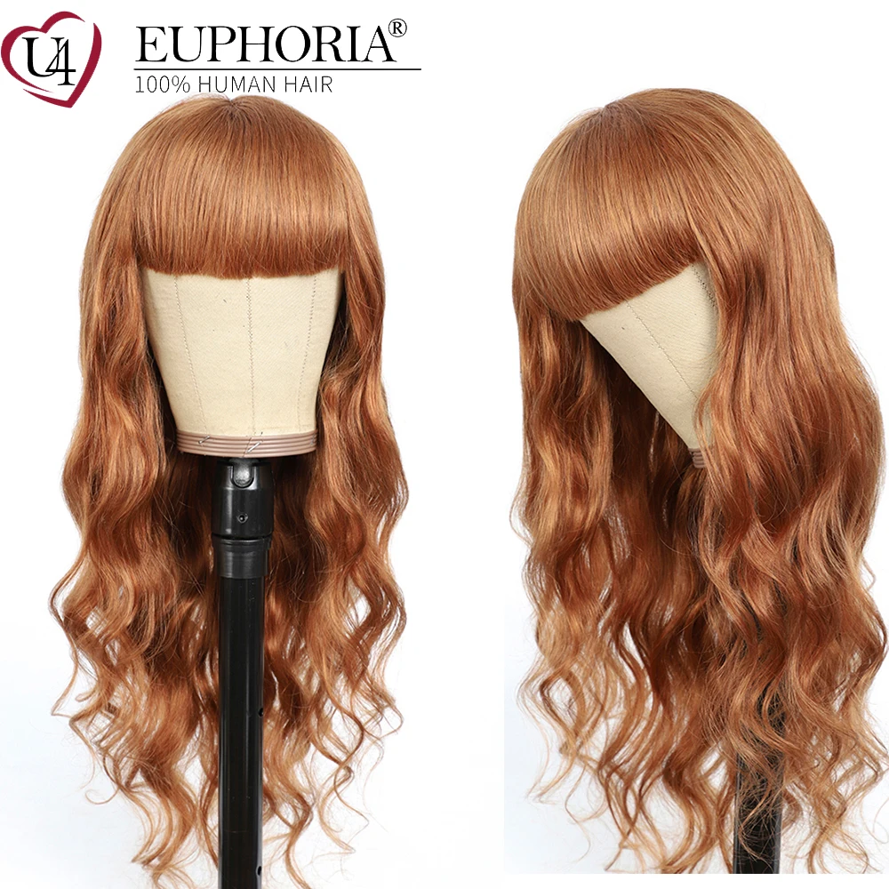 Коричневый 30 волнистые парики с челкой красный бордовый бразильский 9А Remy человеческие волосы полный машинный парик блонд коричневый длинный парик EUPHORIA