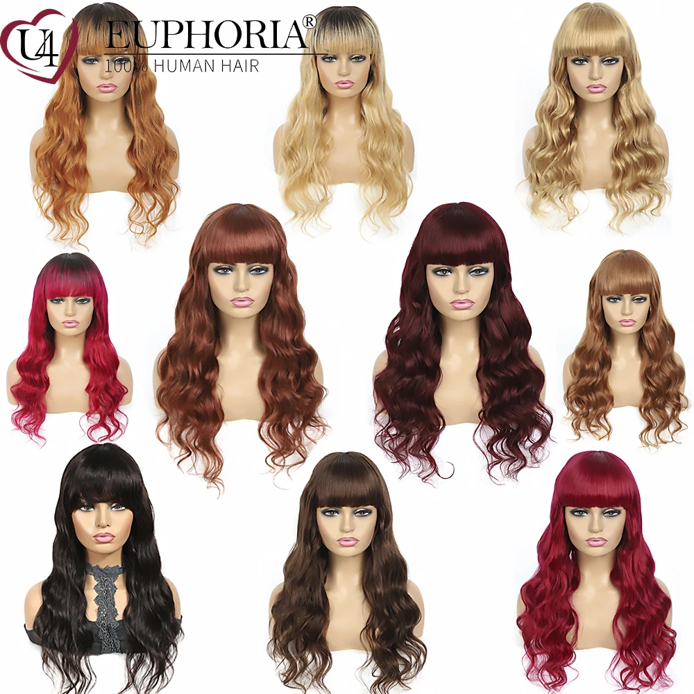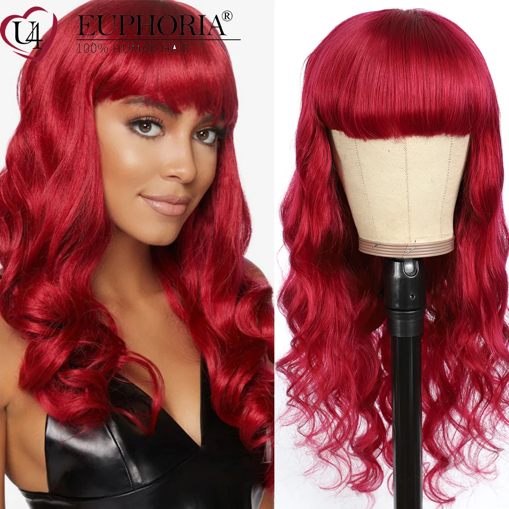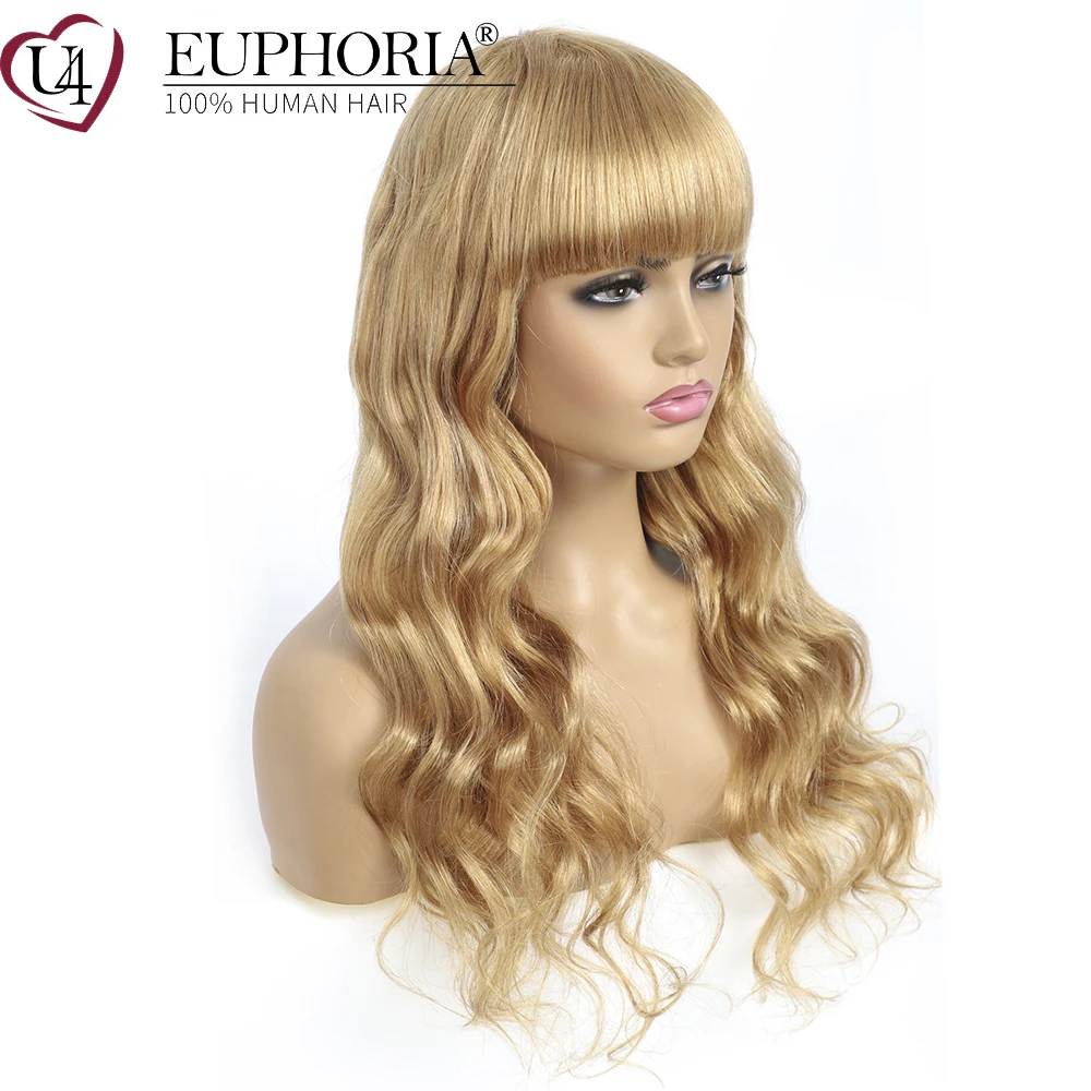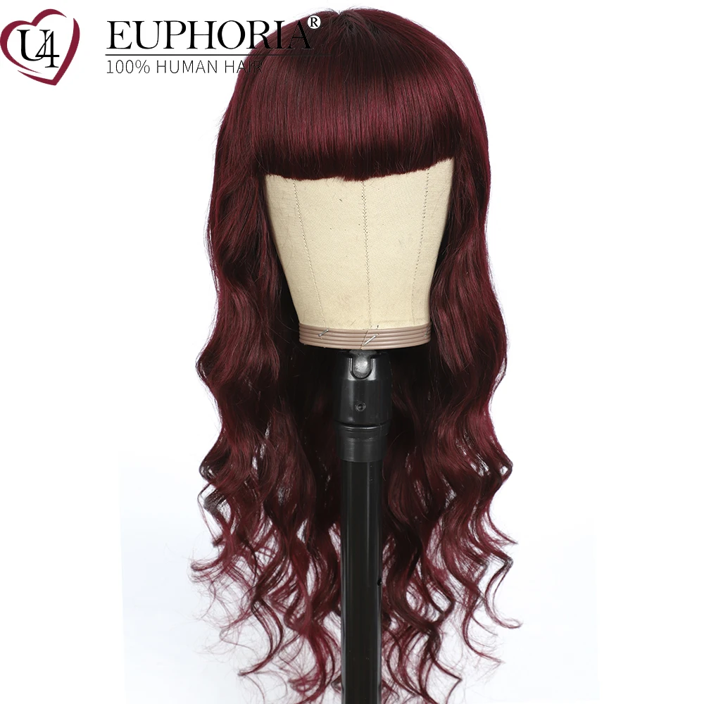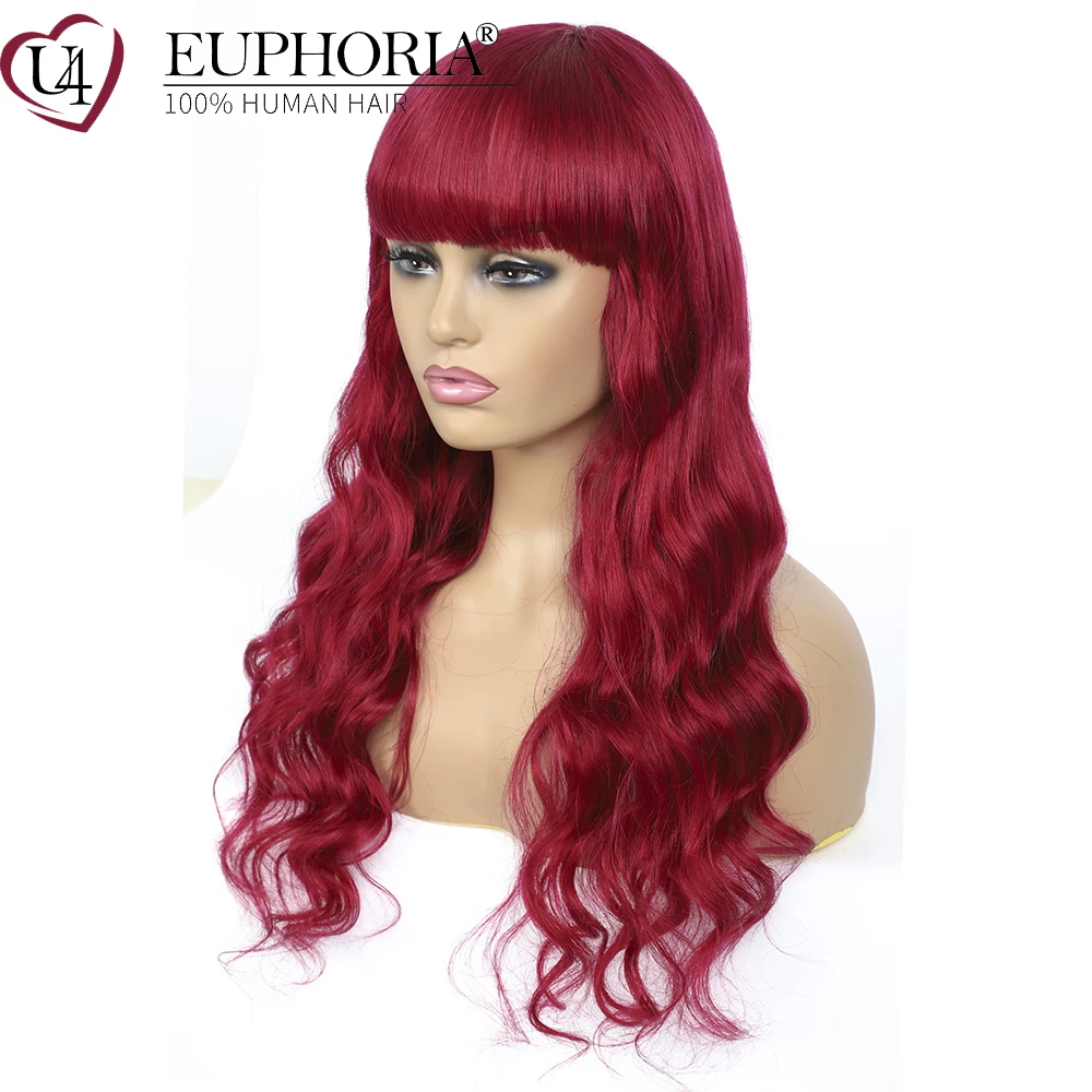 Бразильские человеческие волнистые волосы, для придания объема парики с челкой красный бордовый 9A Реми волосы для всей машины парики блондинка коричневый длинный парик 150% EUPHORIA