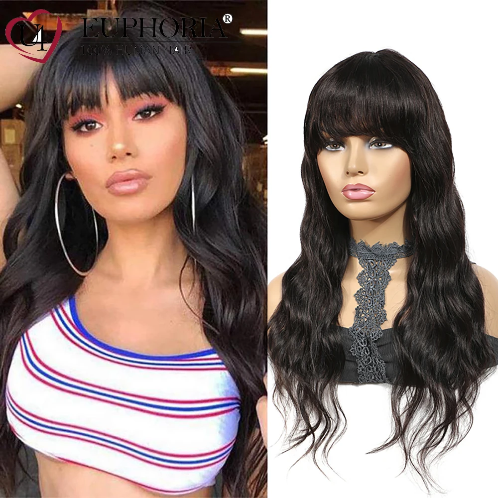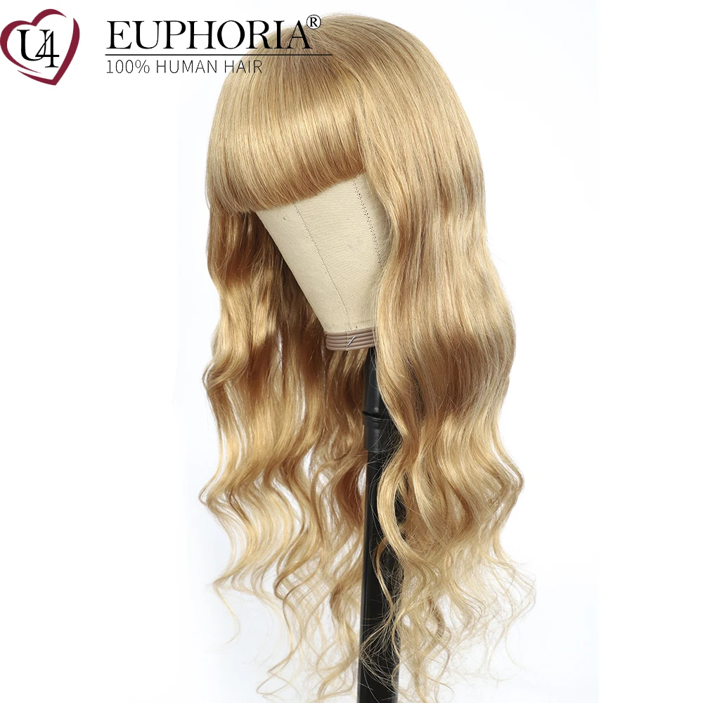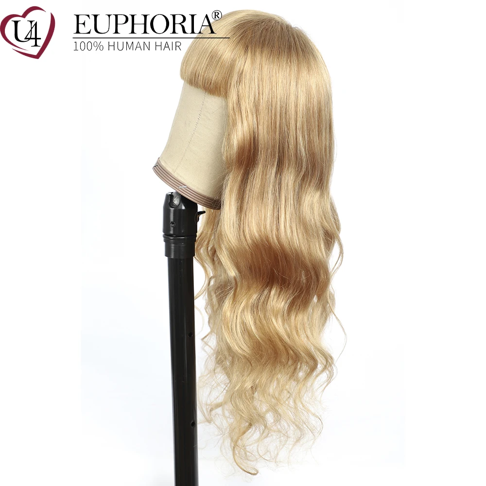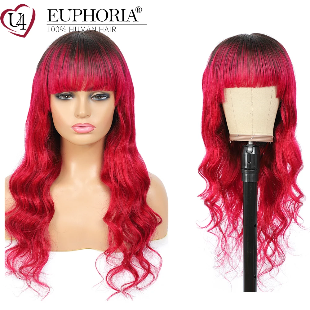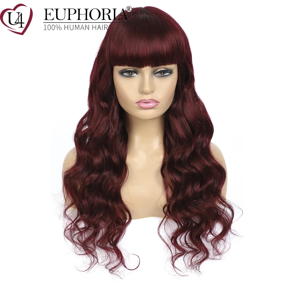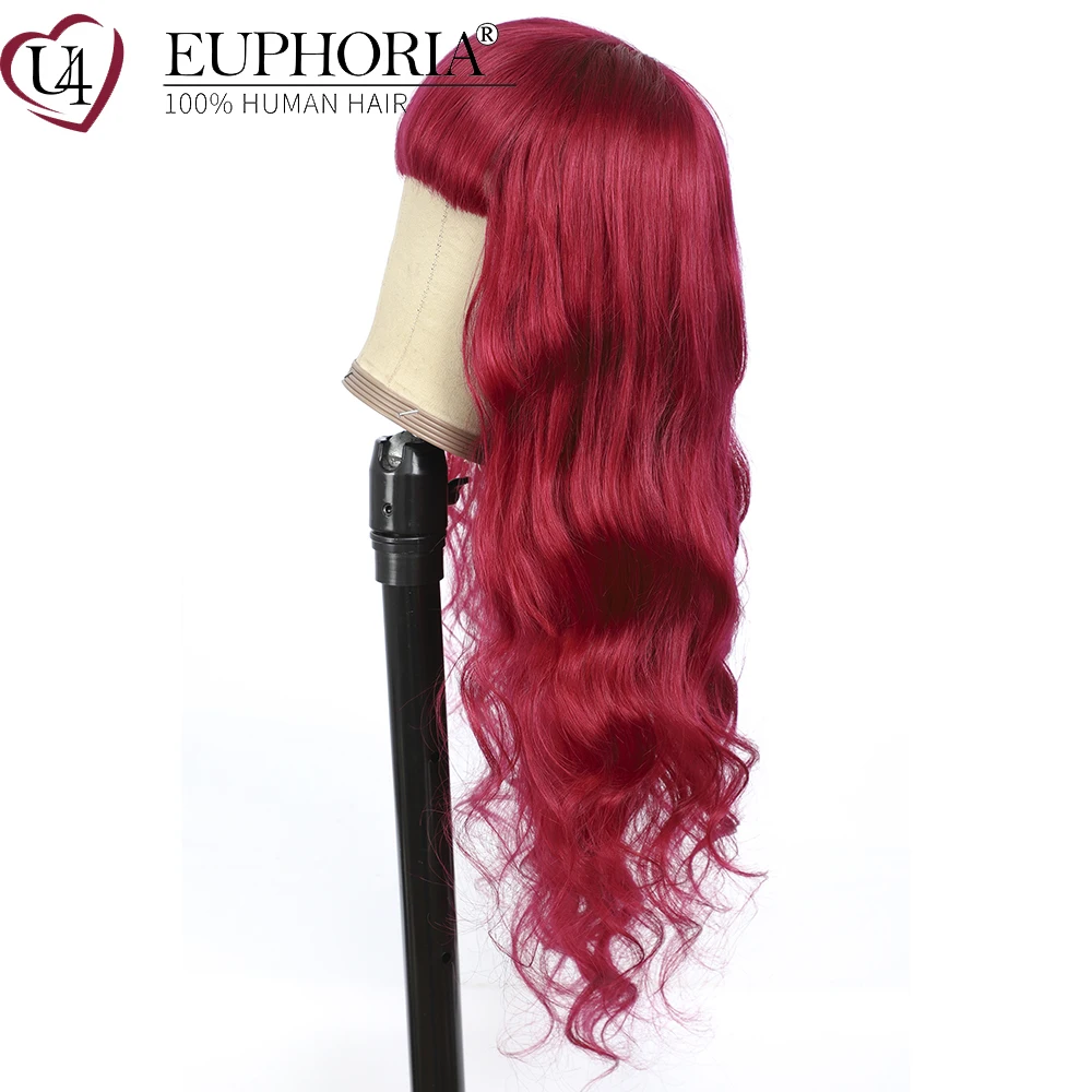 Бразильские человеческие волнистые волосы, для придания объема парики с челкой красный бордовый 9A Реми волосы для всей машины парики блондинка коричневый длинный парик 150% EUPHORIA