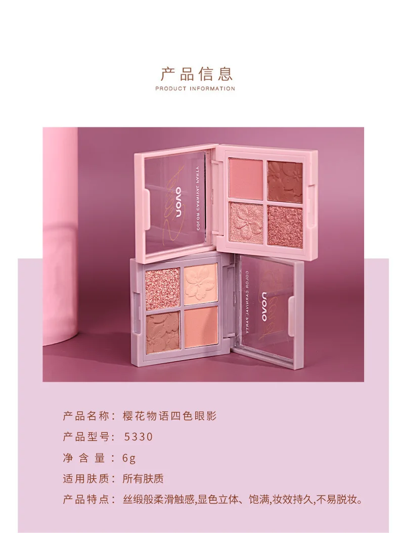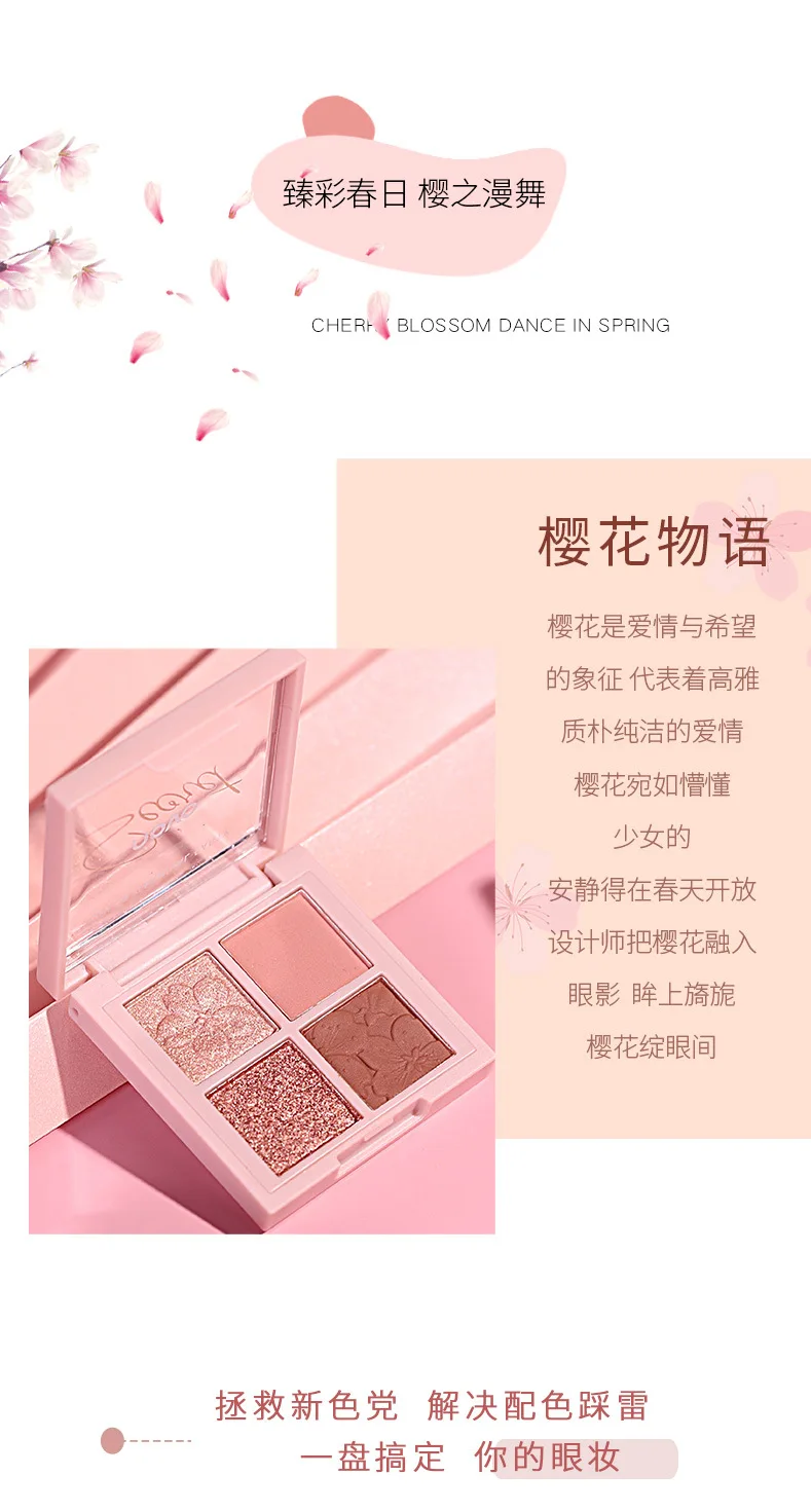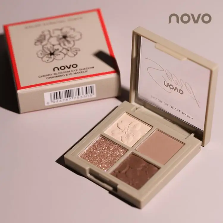 Палитра теней для век Novo, 4 цвета, матовая, с блестками, 60 шт., 36 мм