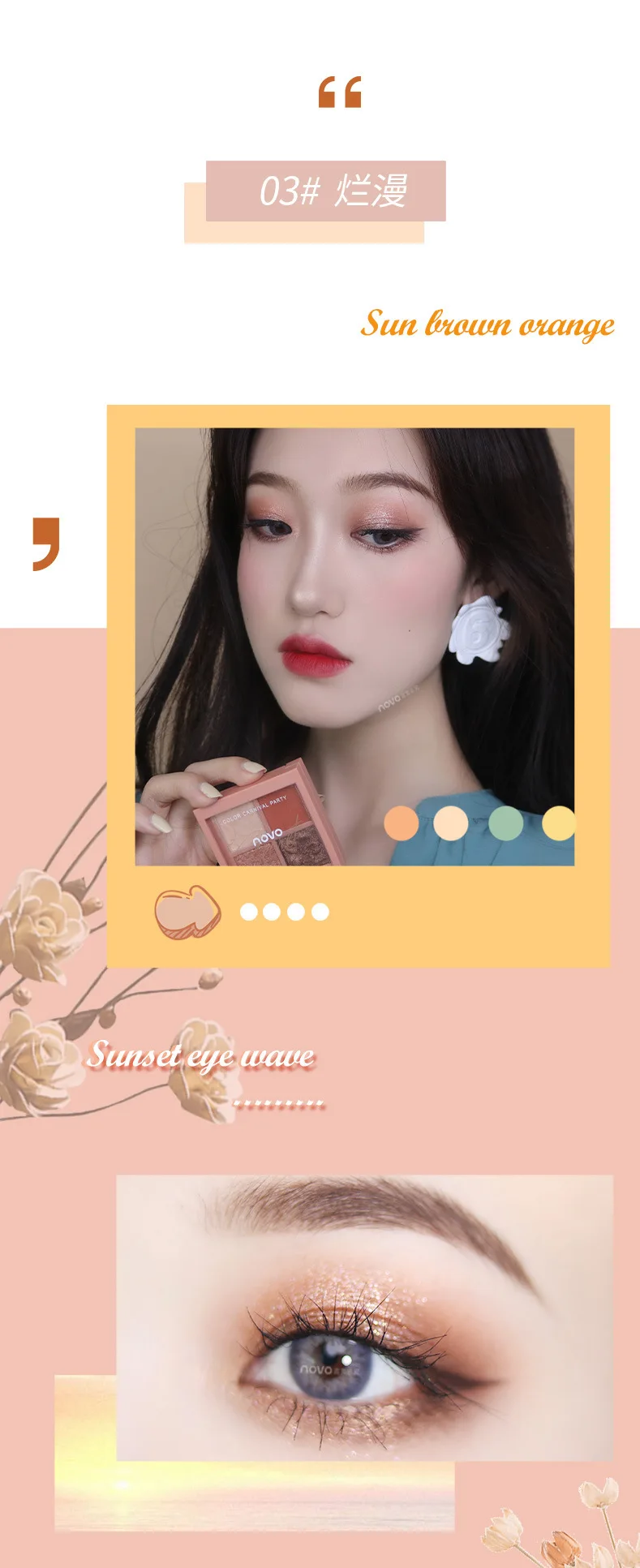 Палитра для макияжа Novo Четырехцветные тени для век матовые перлам...