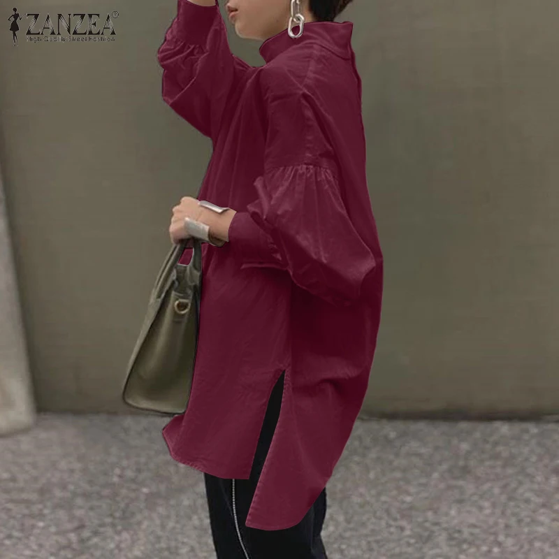 Блузка ZANZEA женская с пуговицами, Модная элегантная повседневная туника с длинным рукавом, Свободный Топ для работы, Однотонная рубашка