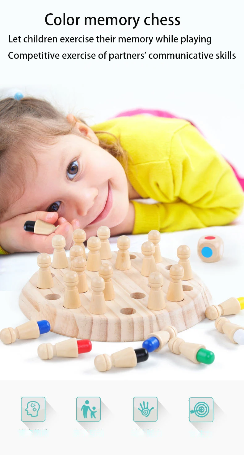Детские деревянные развивающие Пазлы Монтессори, шахматы с цветной памятью, интеллектуальные детские настольные игры для вечеринок, обучающая игрушка
