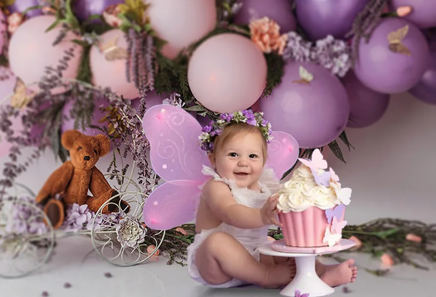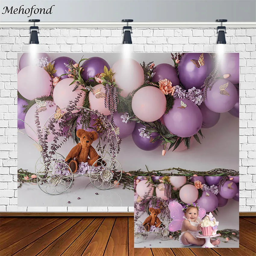 Mehofond день рождения торт разбивать фон фиолетовый шар цветы Бабочка девушка фотография фоны фотостудия фотосессия Декор