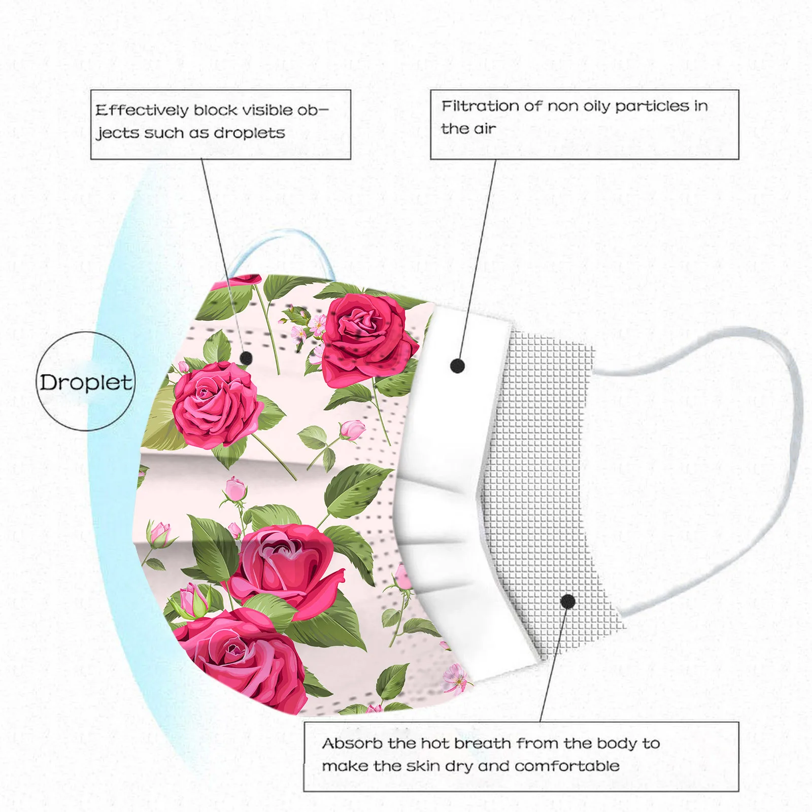 10-100 вещи, Цветочная расцветка, одноразовая маска для взрослых Mascarillas Desechable 3ply фильтры маска для лица с модным принтом для женщин Человек Маски со ртом для лица