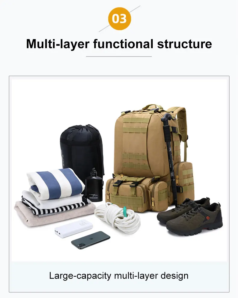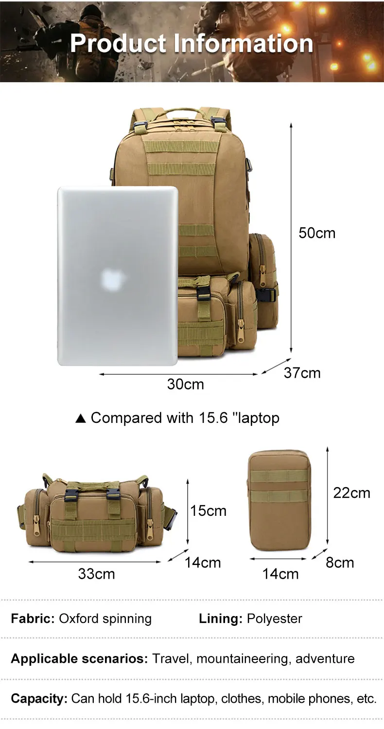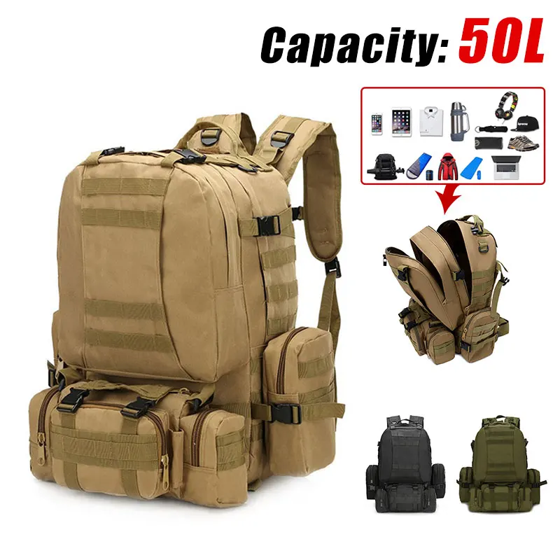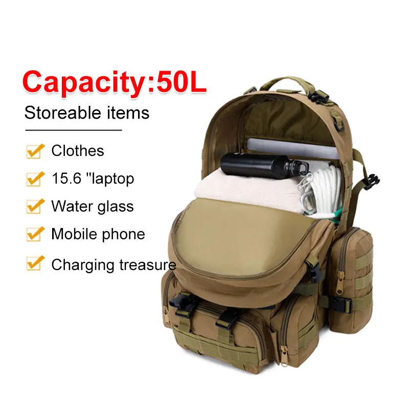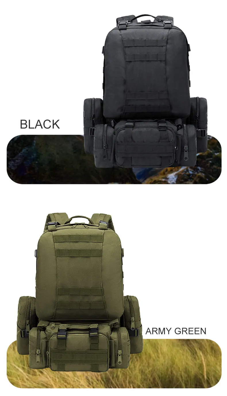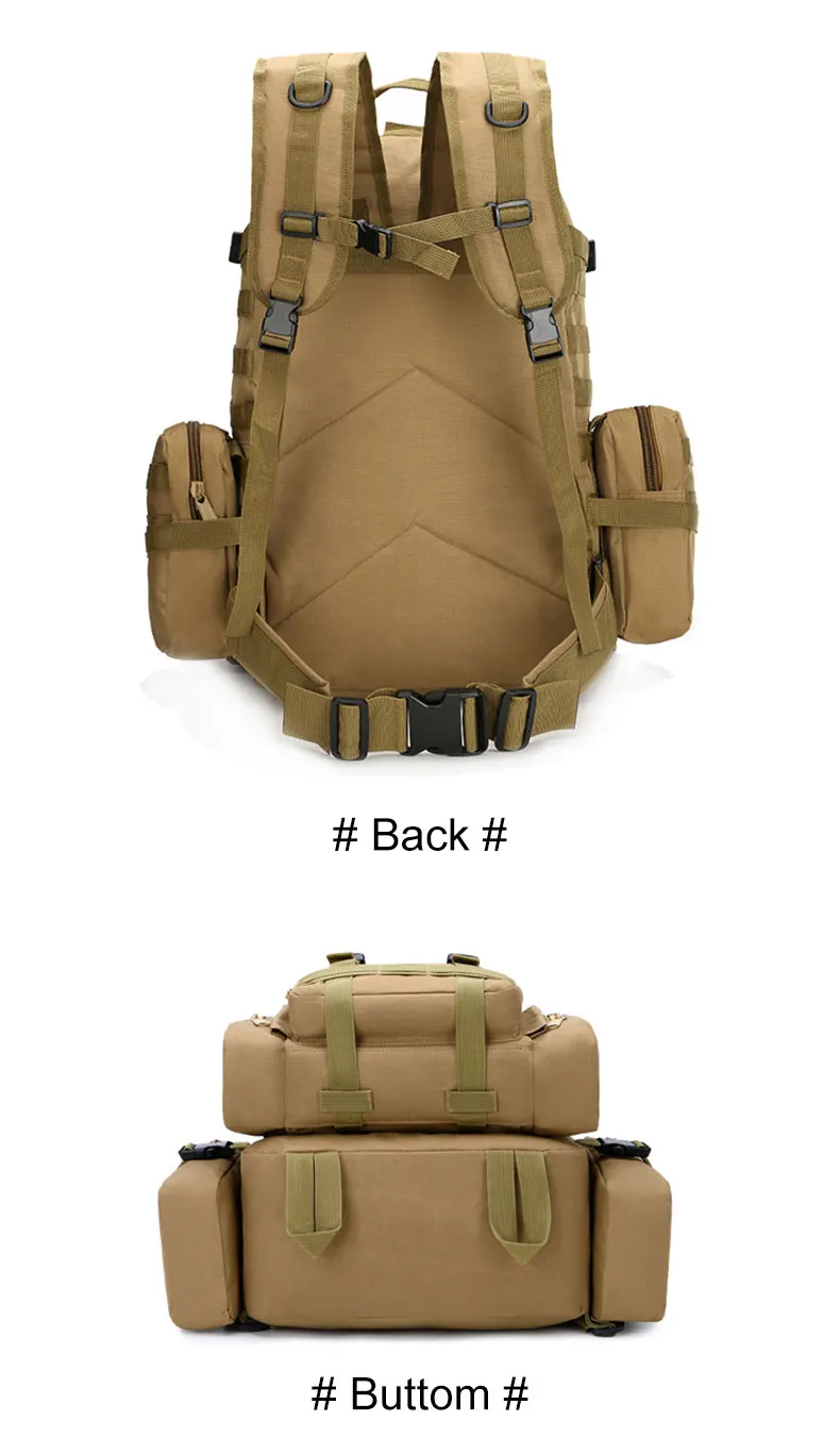 1. 50 л большой емкости, с 3 съемными Молле мешками, прикрепленными спереди и с двух сторон.4 сумки могут быть отделены, удобны и портативны;2. Профессиональный дизайн карман для сумки для воды, может разместить различные размеры сумки для воды;3. Полностью регулируемый ремень и пояс.4. Широкий и толстый пояс, удобный для переноски.5. Изготовлен из нейлона 600D, износостойкий, прочный.Примечание: Из-за различных измерений допускается погрешность в 1-3 см.Из-за разницы в цвете на дисплее возможна небольшая разница. Это нормально.