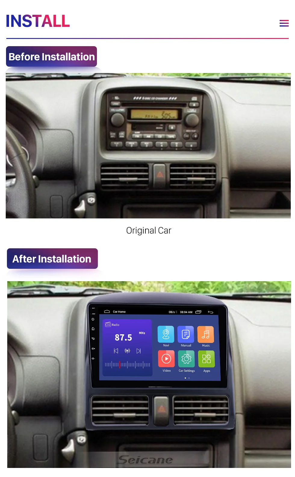 Автомагнитола Seicane, автомобильная стерео-система 9 дюймов, 2 + 32 ГБ, Android 10 2 + 32 ГБ DSP, GPS, для Honda CRV 2 2001-2006, 2 din, QLED, голосовое управление