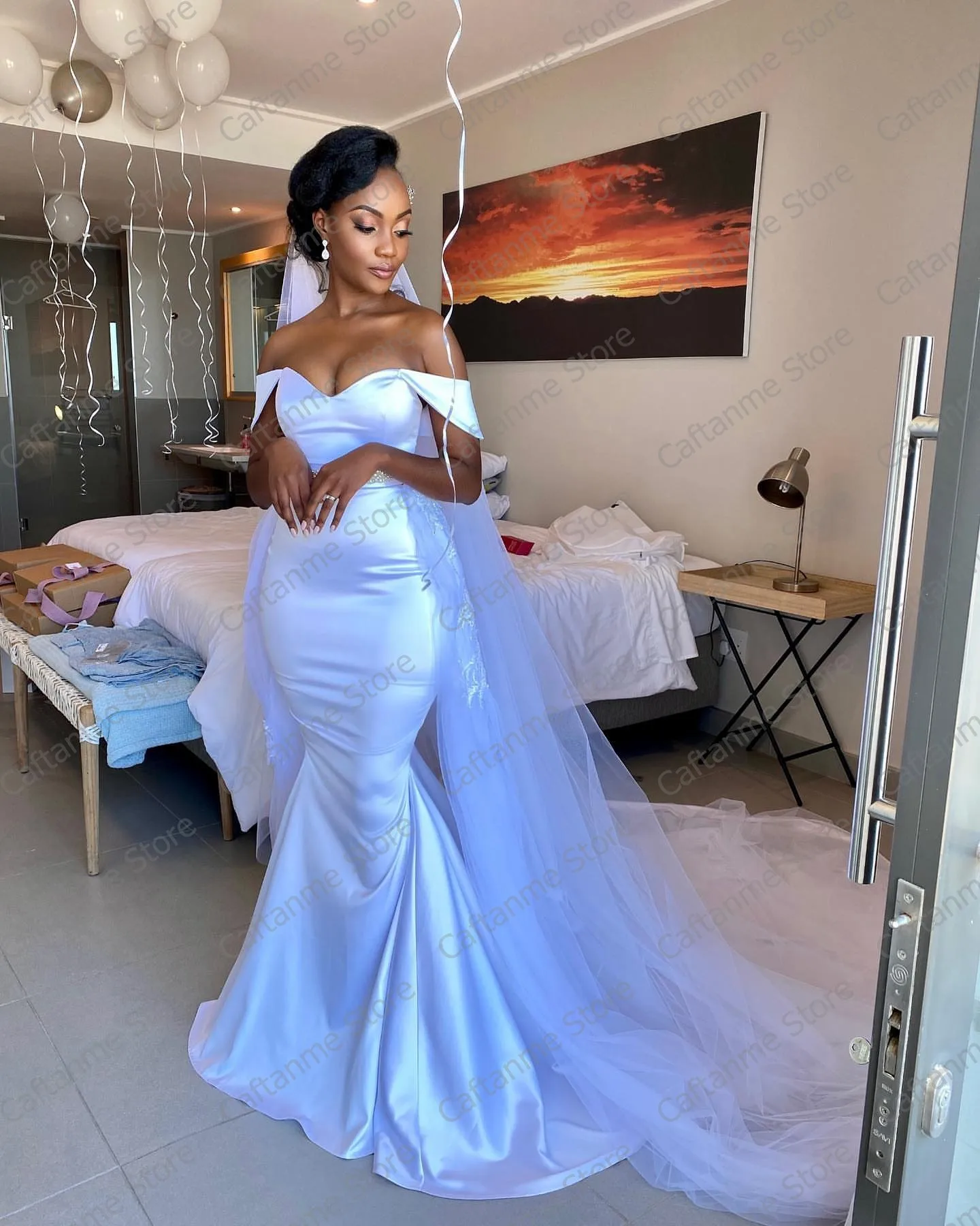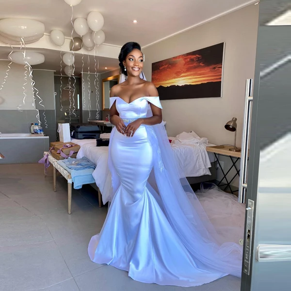 Простое свадебное платье с открытыми плечами, женское платье с отстегивающимся тюлевым шлейфом, Aso Ebi атласные длинные в стиле русалки под заказ