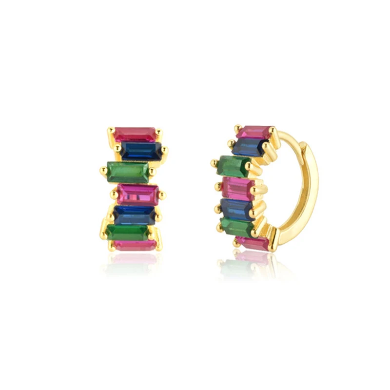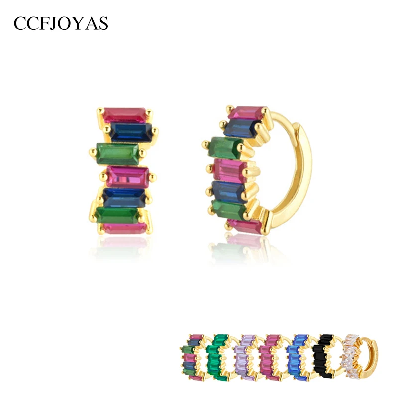 CCFJOYAS 100% 925 стерлингового серебра женские серьги-кольца с Радуга нерегулярные прямоугольный Циркон Круглые серьги, модные ювелирные изделия, Jewelr