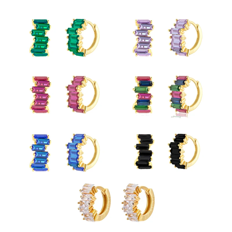 925 стерлингового серебра женские серьги-кольца с крошечные багет C...