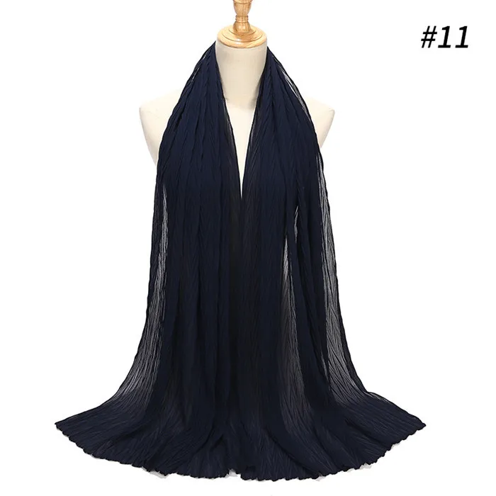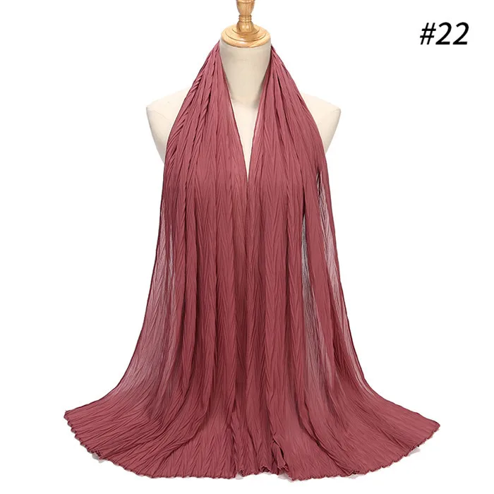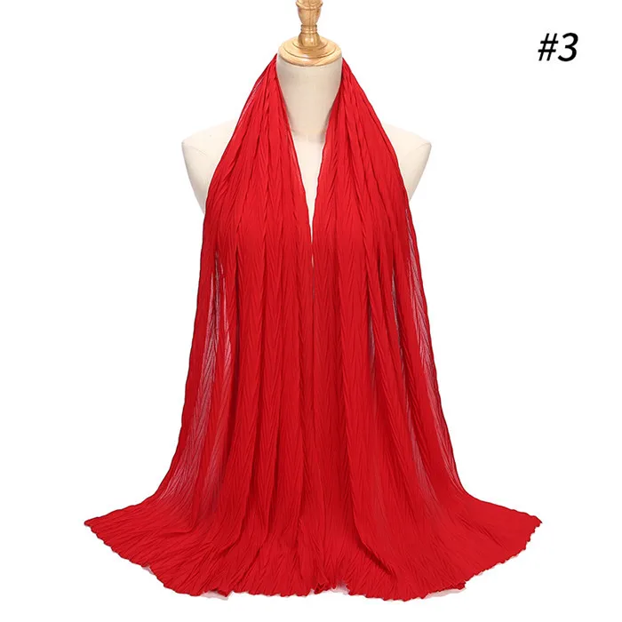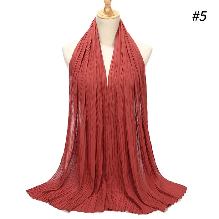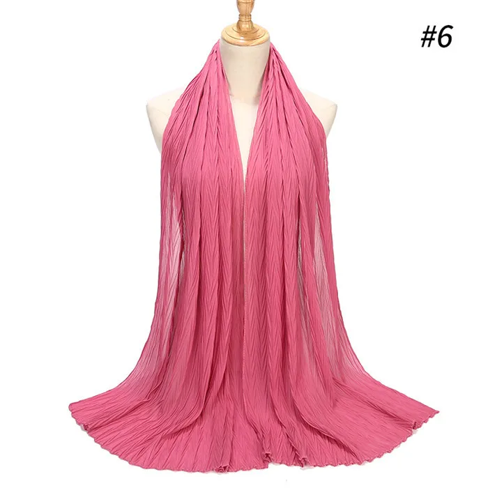 Новинка, плиссированные женские шифоновые хиджабы, шарфы, шали, мусульманский тюрбан, шали, длинные шарфы