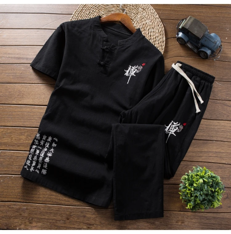 Тип товара: мужские комплекты Сезон: лето Стиль: Модный, Повседневный, Спортивный Длина рукава: короткий Материал: хлопок и конопля Рисунок: однотонный Характеристика: Толщина: обычная Мягкость: мягкая Эластичность: микроэластичность Версия типа: подходит Дизайн: классический Размер: M,L,XL,XXL,3XL,4XL,5XL,6XL Упаковка включает: 1 * мужские футболки и брюки