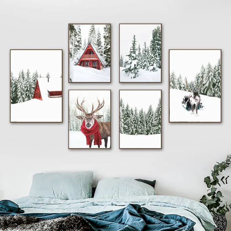 Рождественские картина с оленем природы снегом деревом настенные ка...