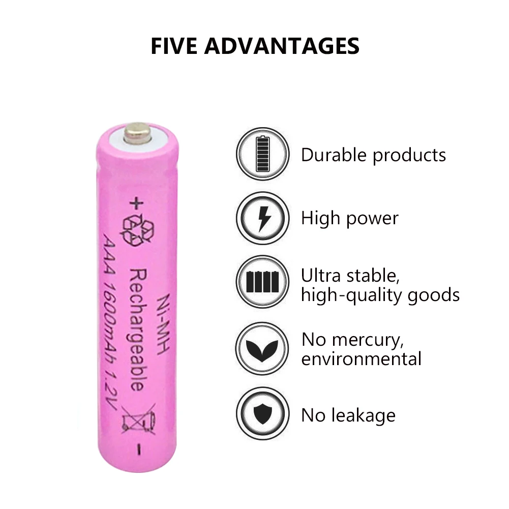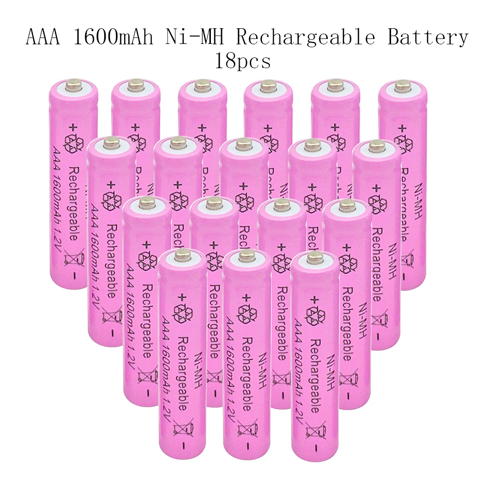 AAA 18 шт. 1600 мАч Ni-MH перезаряжаемая батарея 1,2 в 3A розовые высококачественные предварительно заряженные батареи для камеры игрушек