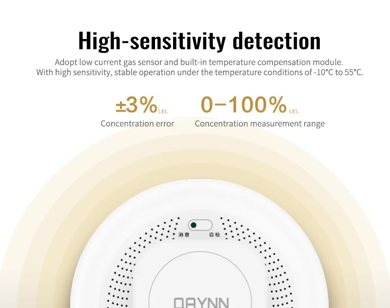 【Обнаружение высокой чувствительности】Использование низко-токовых газовых датчиков, встроенный модуль компенсации температуры, с высокой чувствительностью, точной сигнализацией, для предотвращения пожаров.