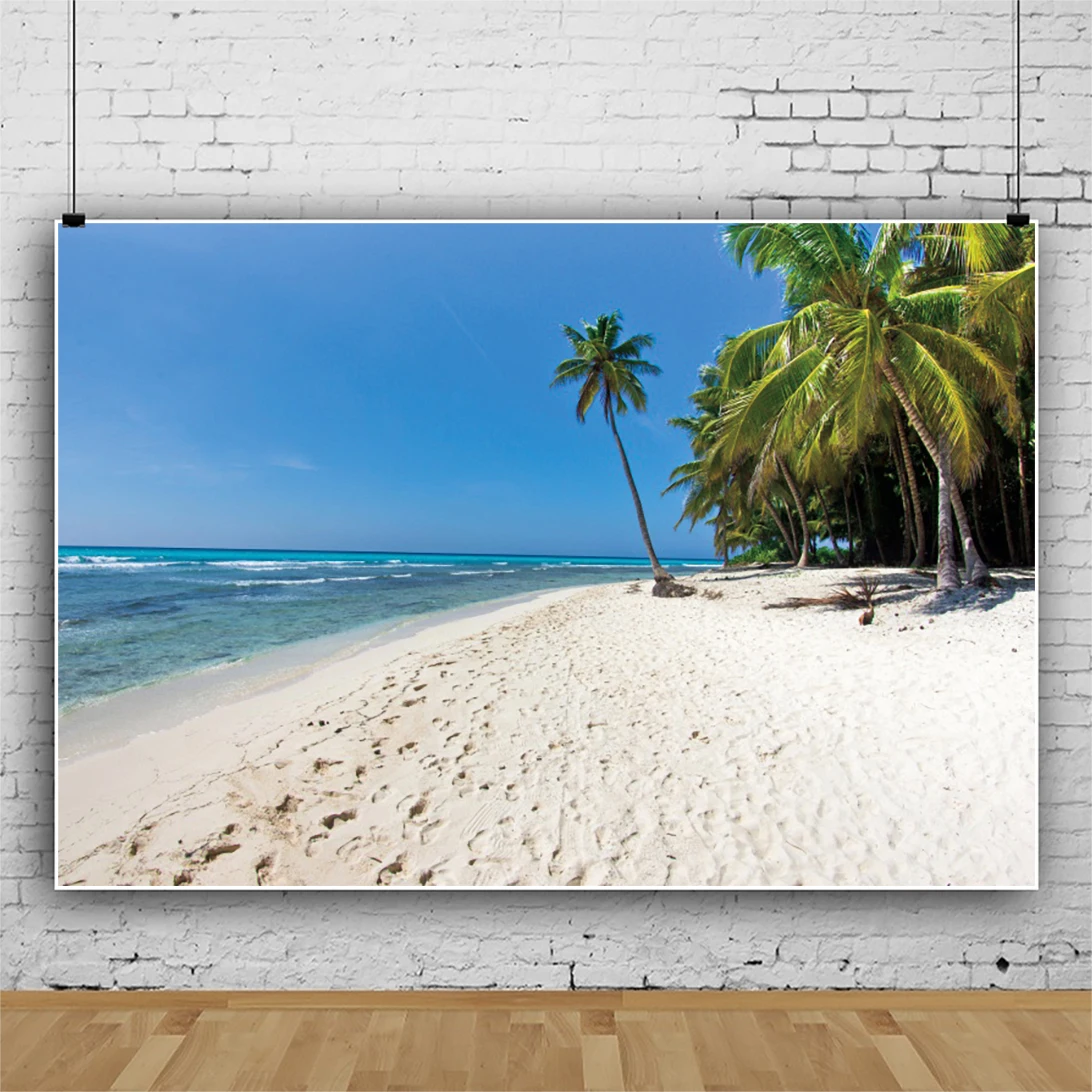 Тропические фоны Laeacco для фотосъемки, лето, море, пляж, песок, пальмы, дерево, голубое небо, природный Живописный фон для фотостудии
