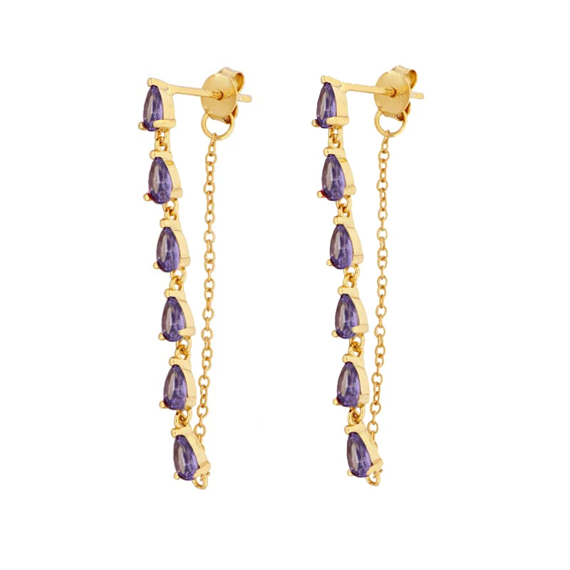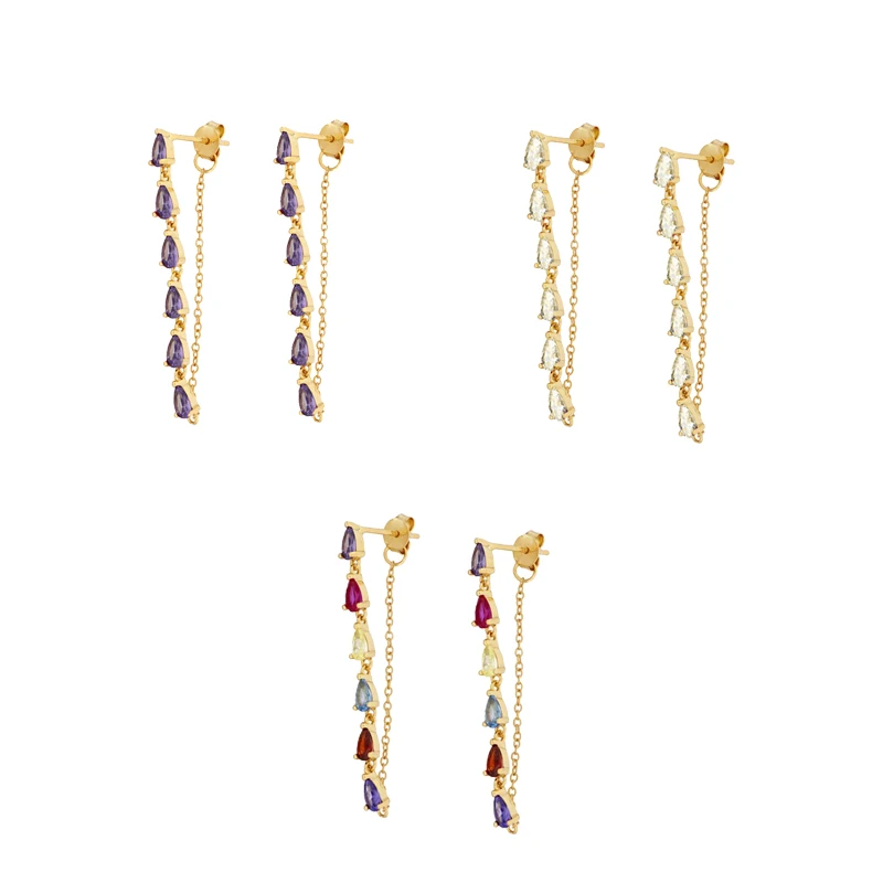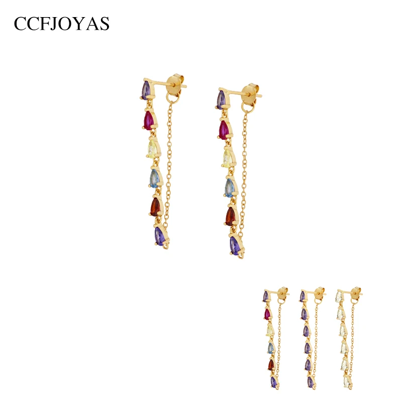 CCFJOYAS 925 стерлингового серебра Серьги капли воды цепи серьги для женщин Радугабелыйфиолетовый цвет цирконие серьги ювелирные украшения