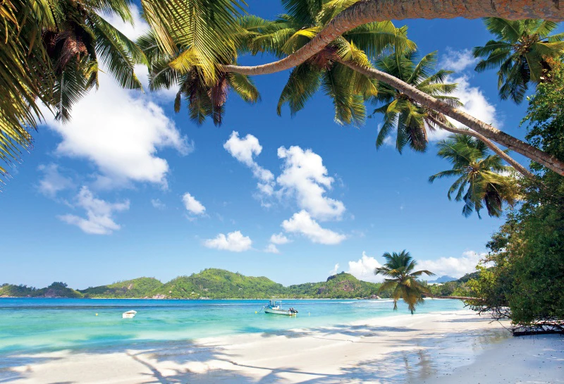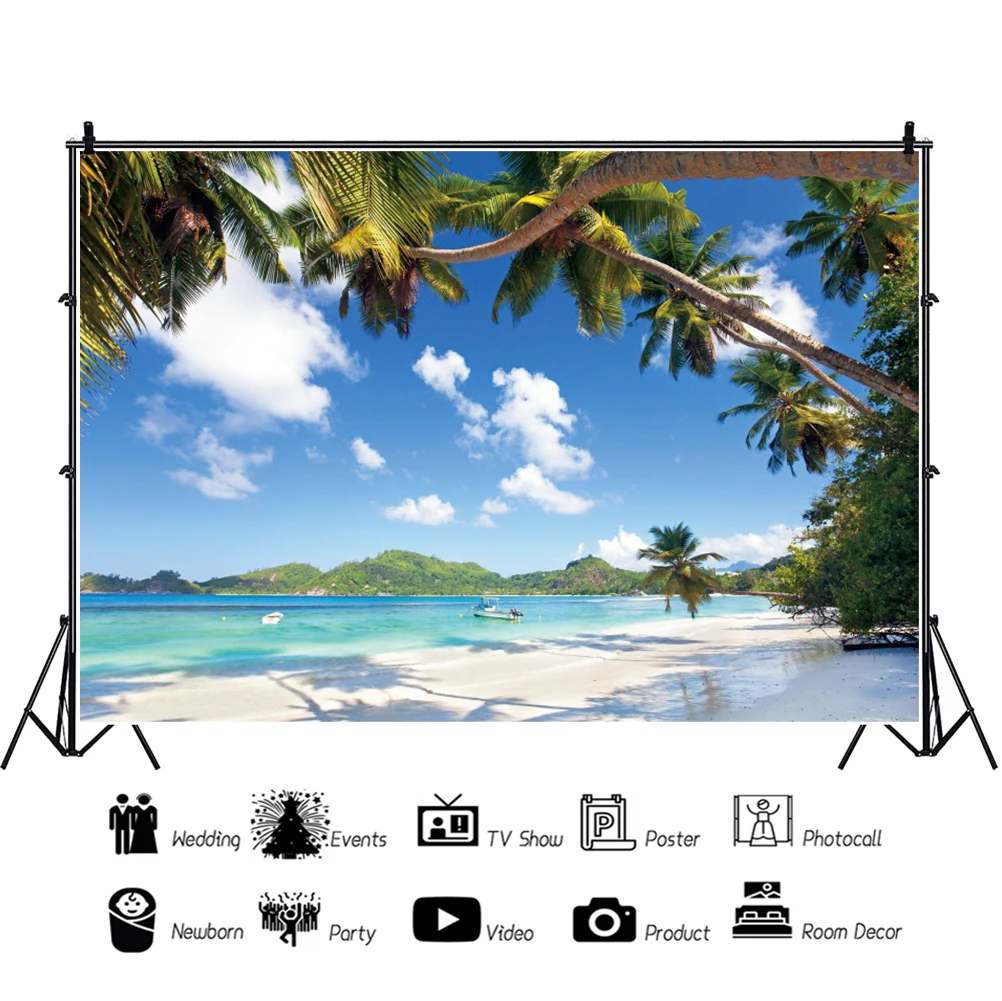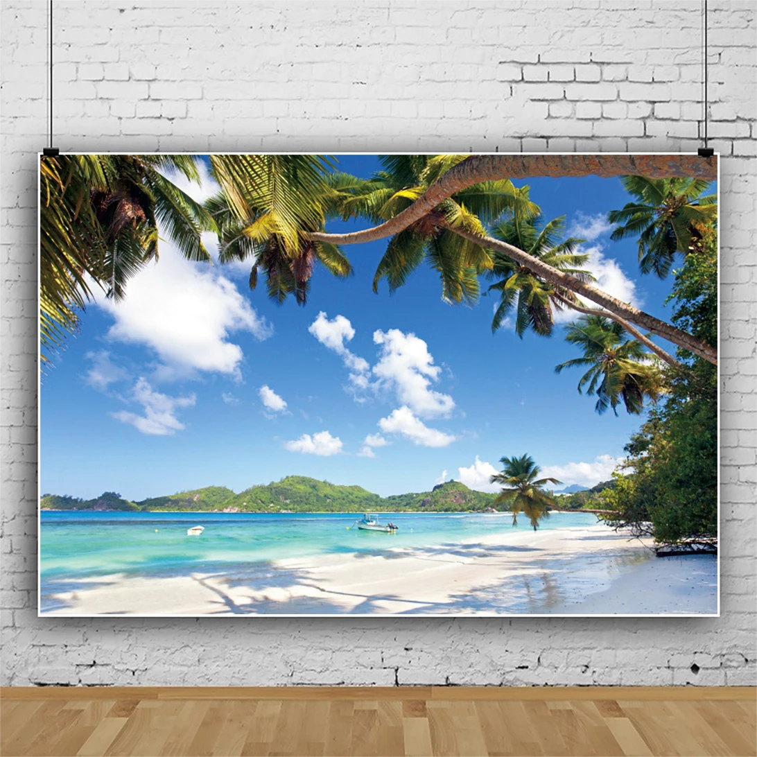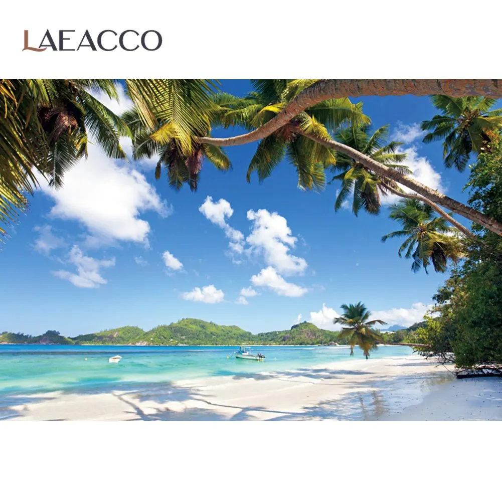 Laeacco летние праздники тропические пальмы дерево голубое небо облачный курорт остров Живописный фон для фотосъемки