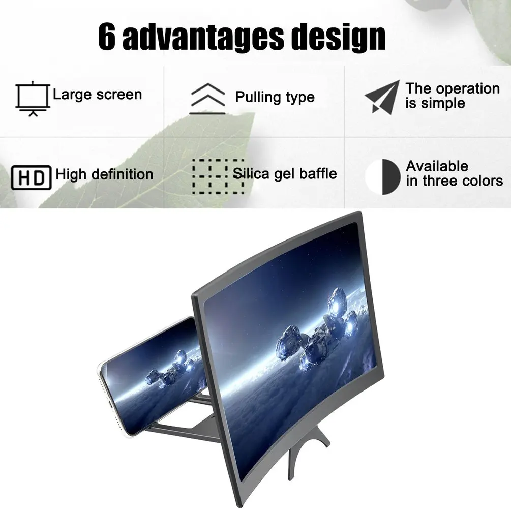 12 дюймов изогнутый Экран усилитель Blu-Ray ультра-прозрачная поверхность идеально мобильный телефон Экран проекции Кино усилитель Настольный кронштейн