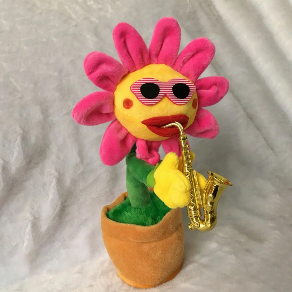 Электрическая плюшевая кукла в виде подсолнуха, 60 песен, USB, саксофон, танцующее, искусственное пение, мягкая плюшевая игрушка для детей