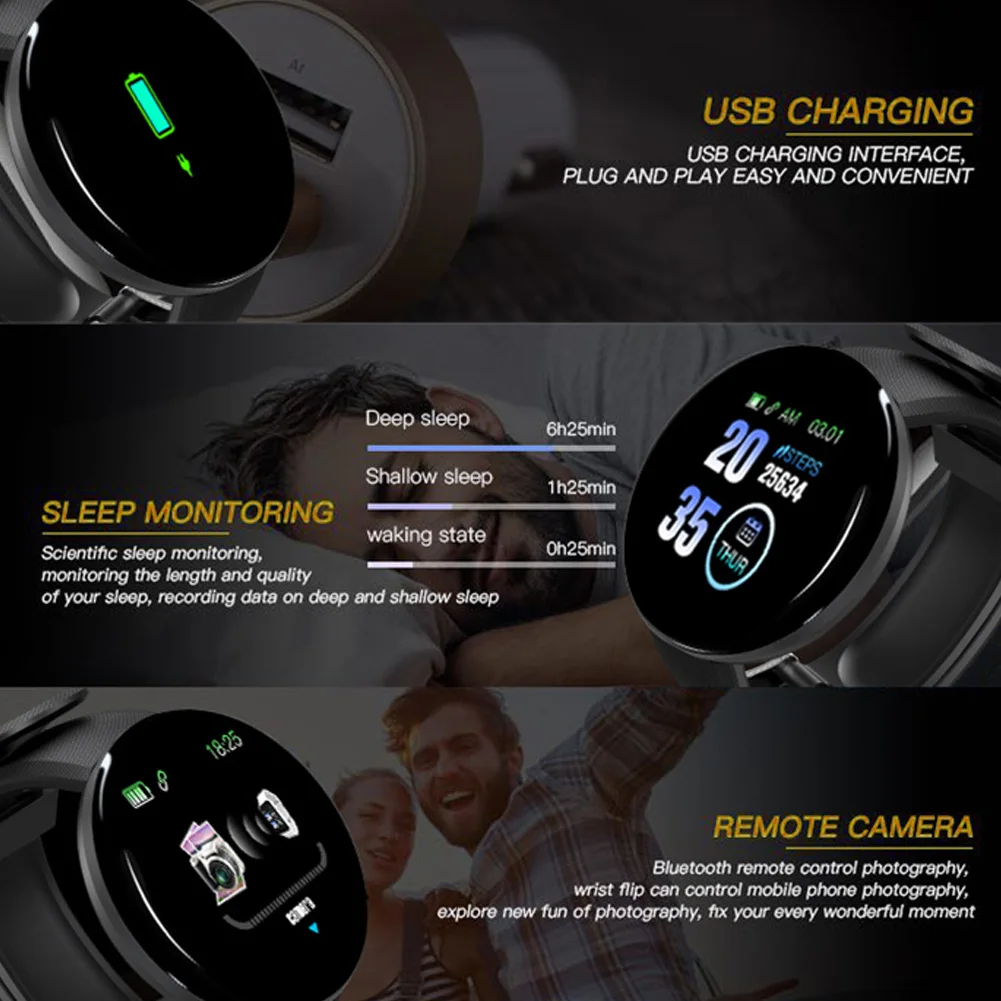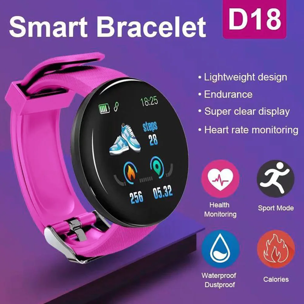 Новые смарт-часы D18 для мужчин и женщин Монитор артериального давления пульса водонепроницаемый Bluetooth круглый фитнес-трекер умные часы