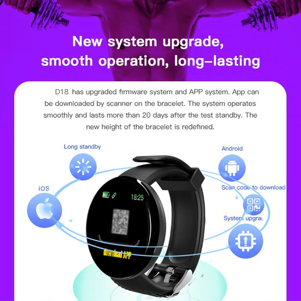 Умные часы D18 с пульсометром, мужские и женские умные часы, круглы...
