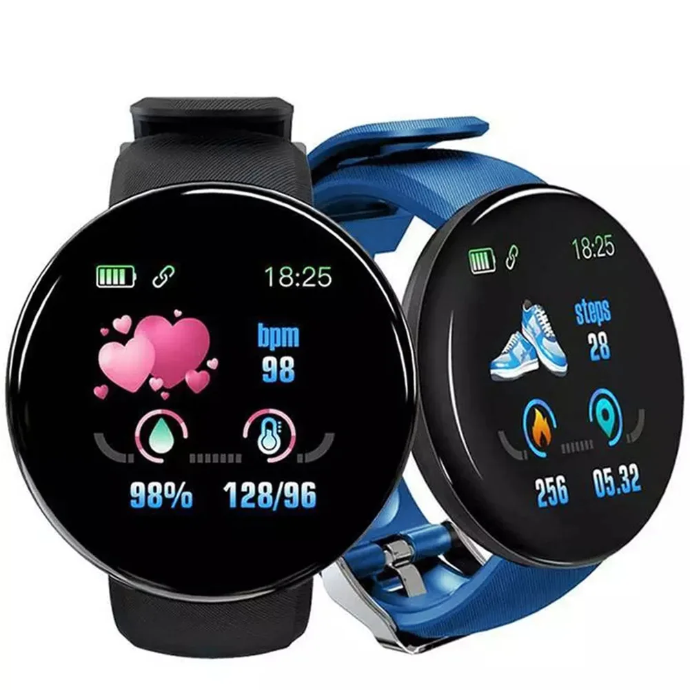Смарт-часы D18 с тонометром и пульсометром, водонепроницаемый кругл...